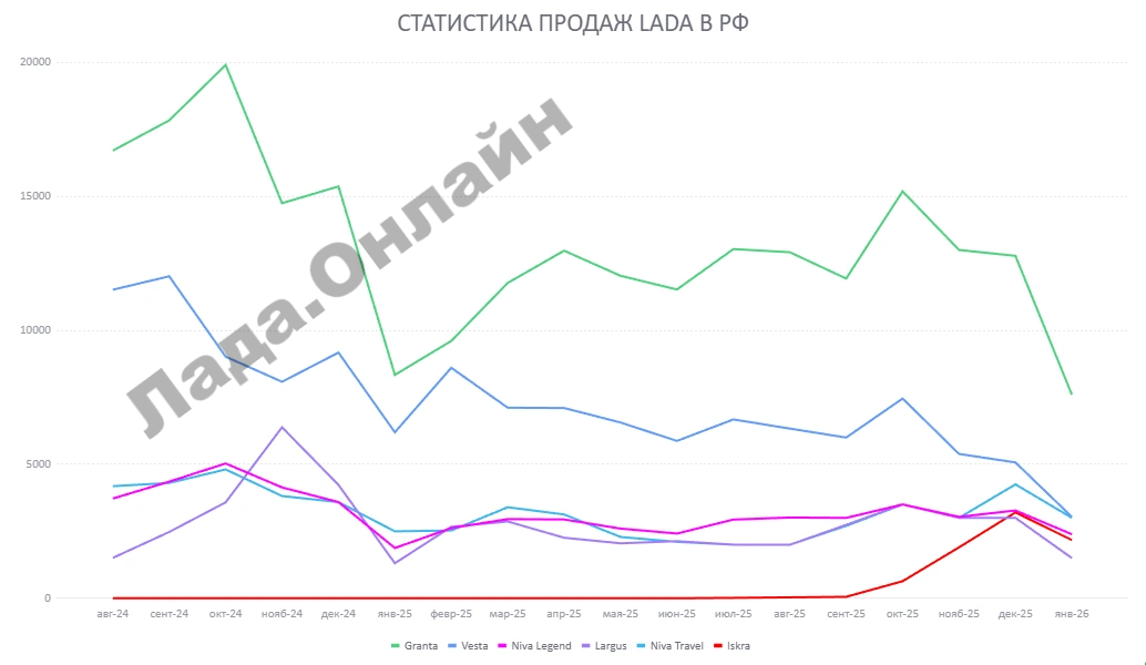 Продажи автомобилей LADA в начале 2026 года худшие за последние 20 лет