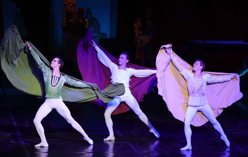 Он вводит в «Ромео и Джульетту» образ Ненависти, представленный шестью танцорами-мужчинами, которые имеют власть обращаться с персонажами как с марионетками, именно они вкладывают мечи в руки членов семей Монтекки и Капулетти, именно они внушают Тибальду подозрения относительно Ромео, именно они празднуют триумф, склоняясь над очередной жертвой бессмысленной вражды. Белорусский хореограф превосходно выстраивает массовые сцены и, подобно ювелиру, составляющему комбинации из драгоценных камней, создает дуэты влюбленных — образные, подробные, страстные.