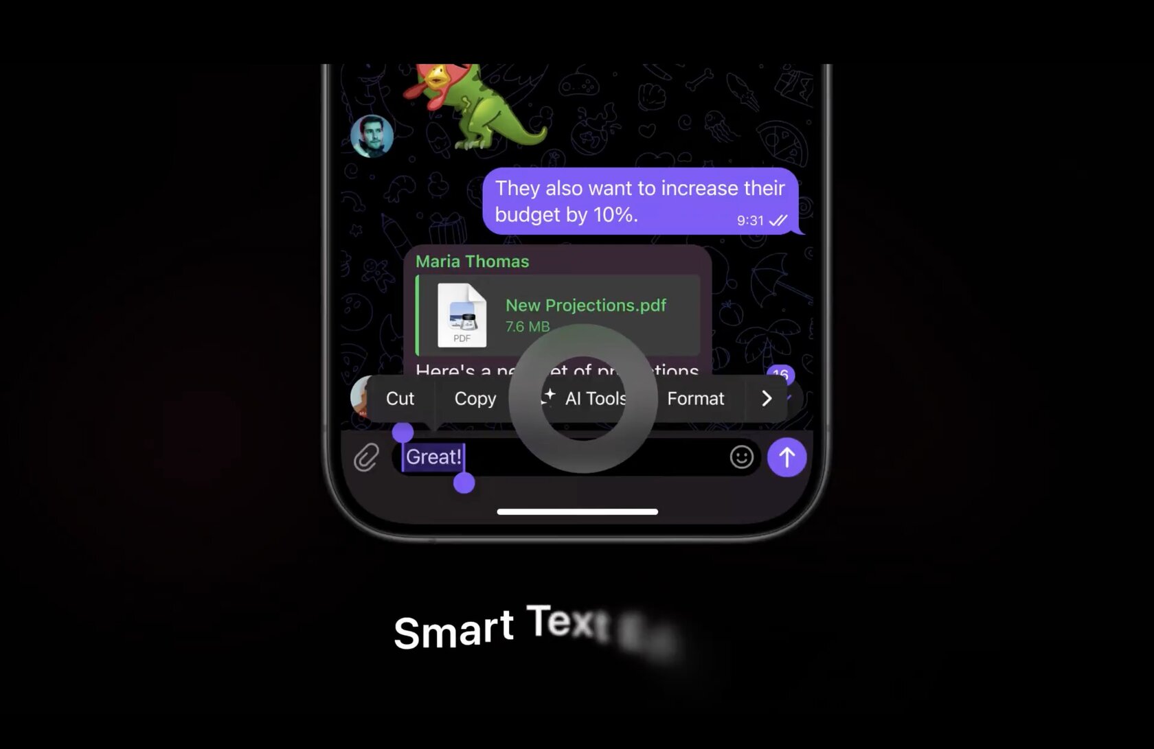 Завершают же список нововведений функции генерации контента — ИИ умеет генерировать стикеры по текстовым запросам пользователя (включая анимированные), а также создавать аватарки.