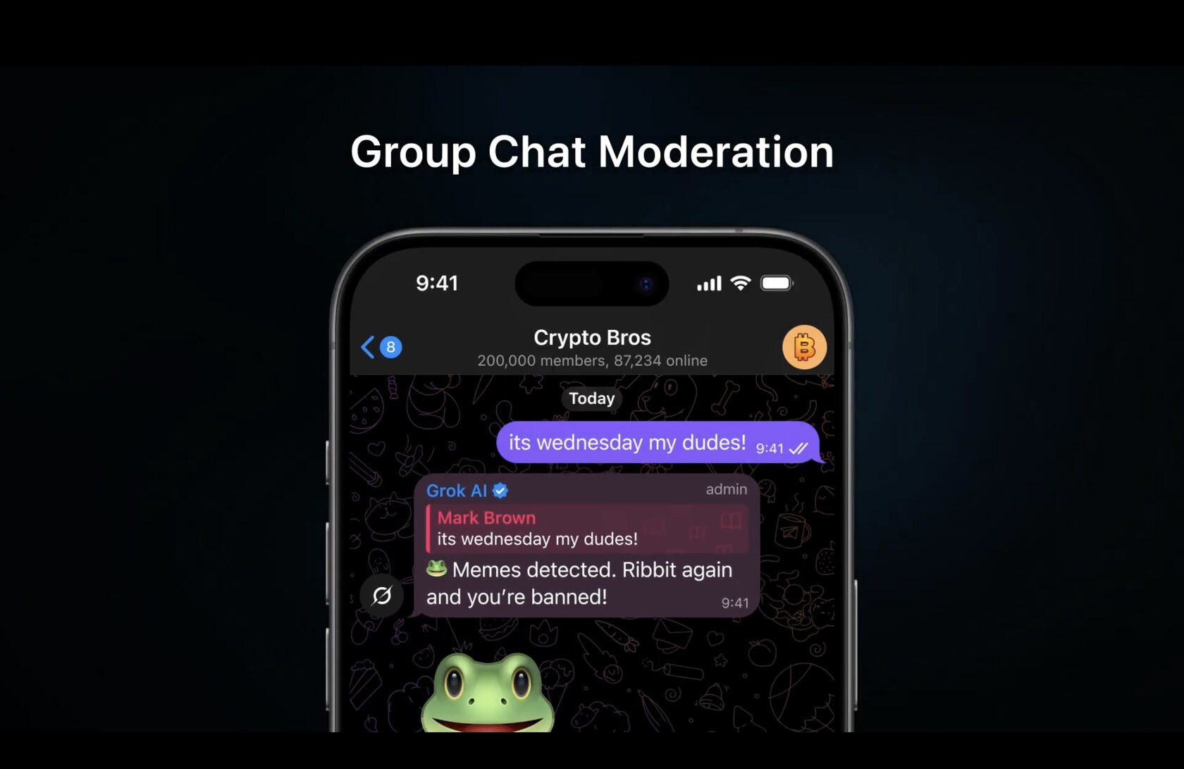 Также ИИ теперь умеет модерировать групповые чаты, предупреждая пользователей о бане за нарушение правил (к сожалению, никакой информации о борьбе ИИ с ботами, заполонившими Telegram-каналы, озвучено не было).