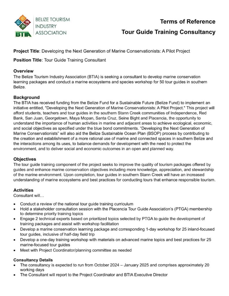 Consultant – Tour Guide Training 0 27.08.2024 20:20 Btia.org Click link to download the TOR: BTIA Tour Guide Consultant TOR