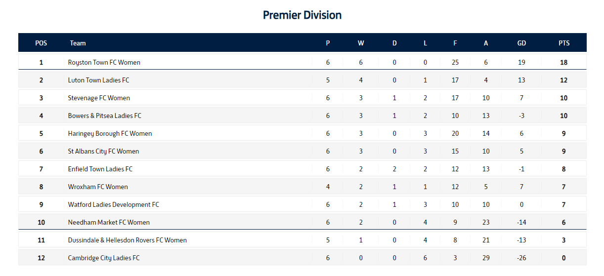 Next up, Royston Town Women are back at home after a few weeks away , and they host Needham Market Women in the Eastern Region Women’s Football League Premier Division, Sunday, 2pm kick-off. Royston Town Women will be looking for a 8th straight win on the bounce, while Needham Market have picked up a bit of forum recently.