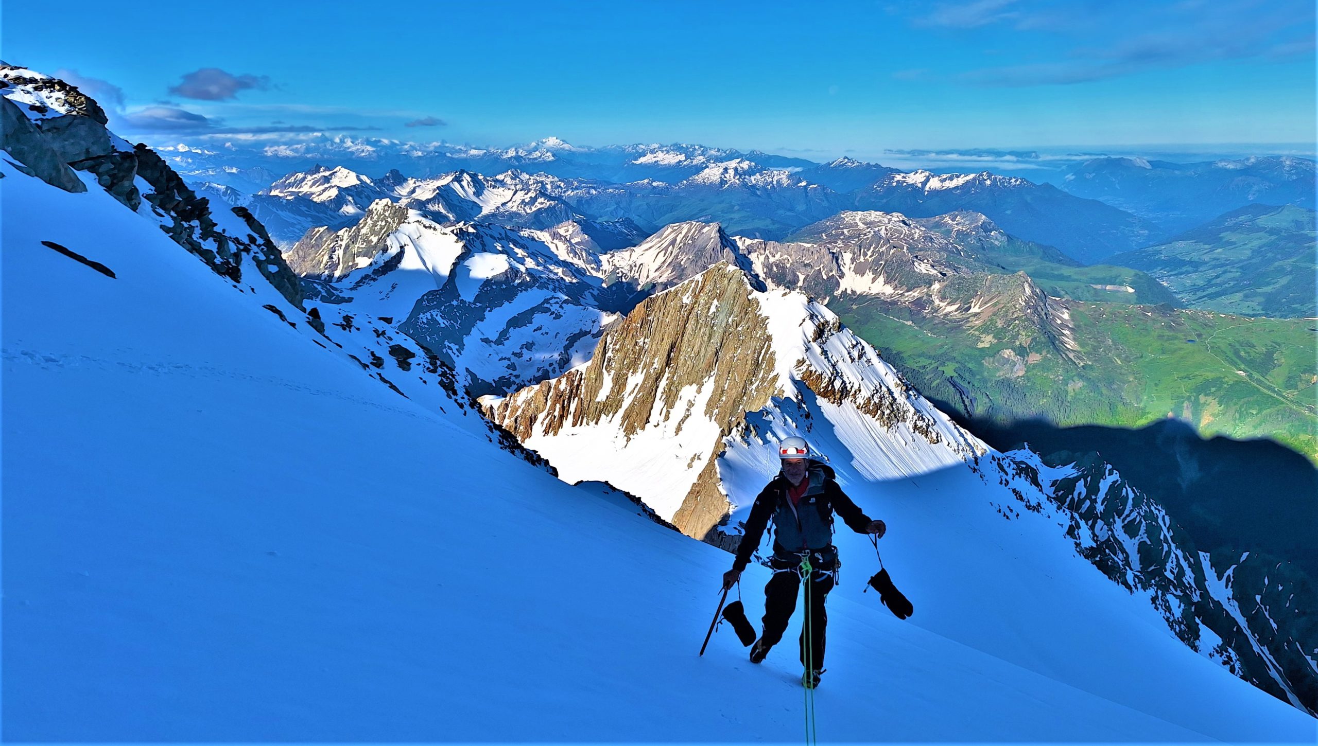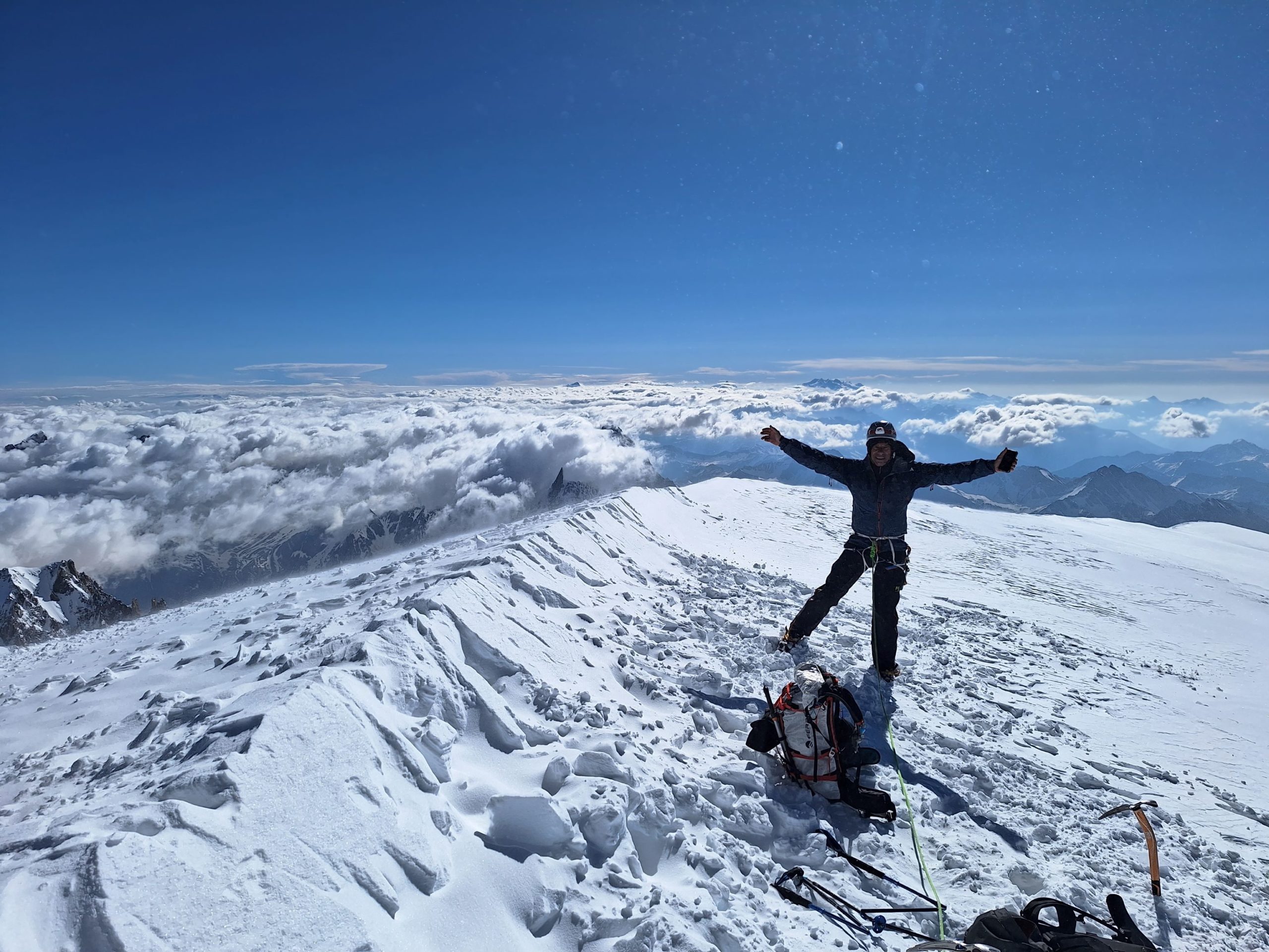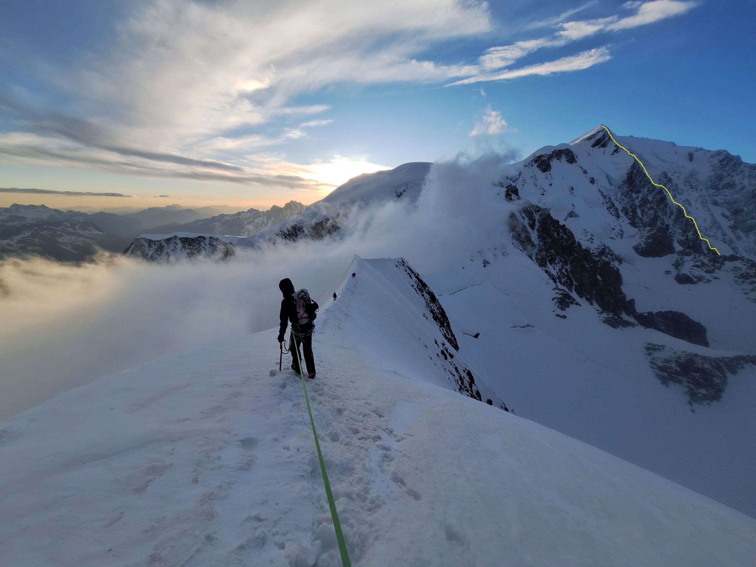 Du 23 au 28 juin 2024, avec Marc Ceccanti, nous avons parcouru une ligne très esthétique pour nous hisser au sommet du Mont Blanc.