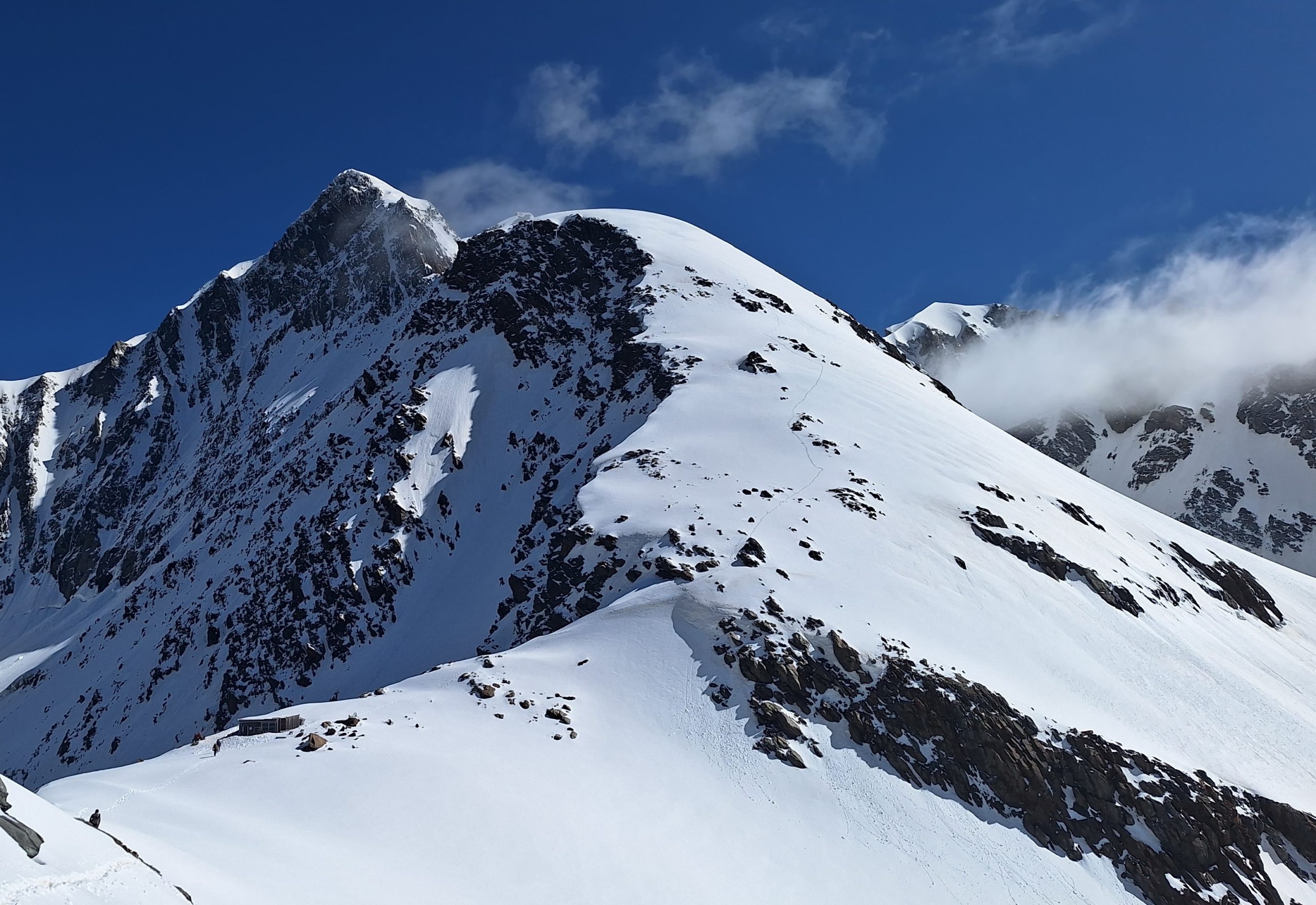 Les courbes de la montagne sont vraiment superbes, c’est un régal. Sur l’arête les conditions sont à nouveau parfaites, le vent a sculpté son œuvre et nous profitons de cette ligne majestueuse.
