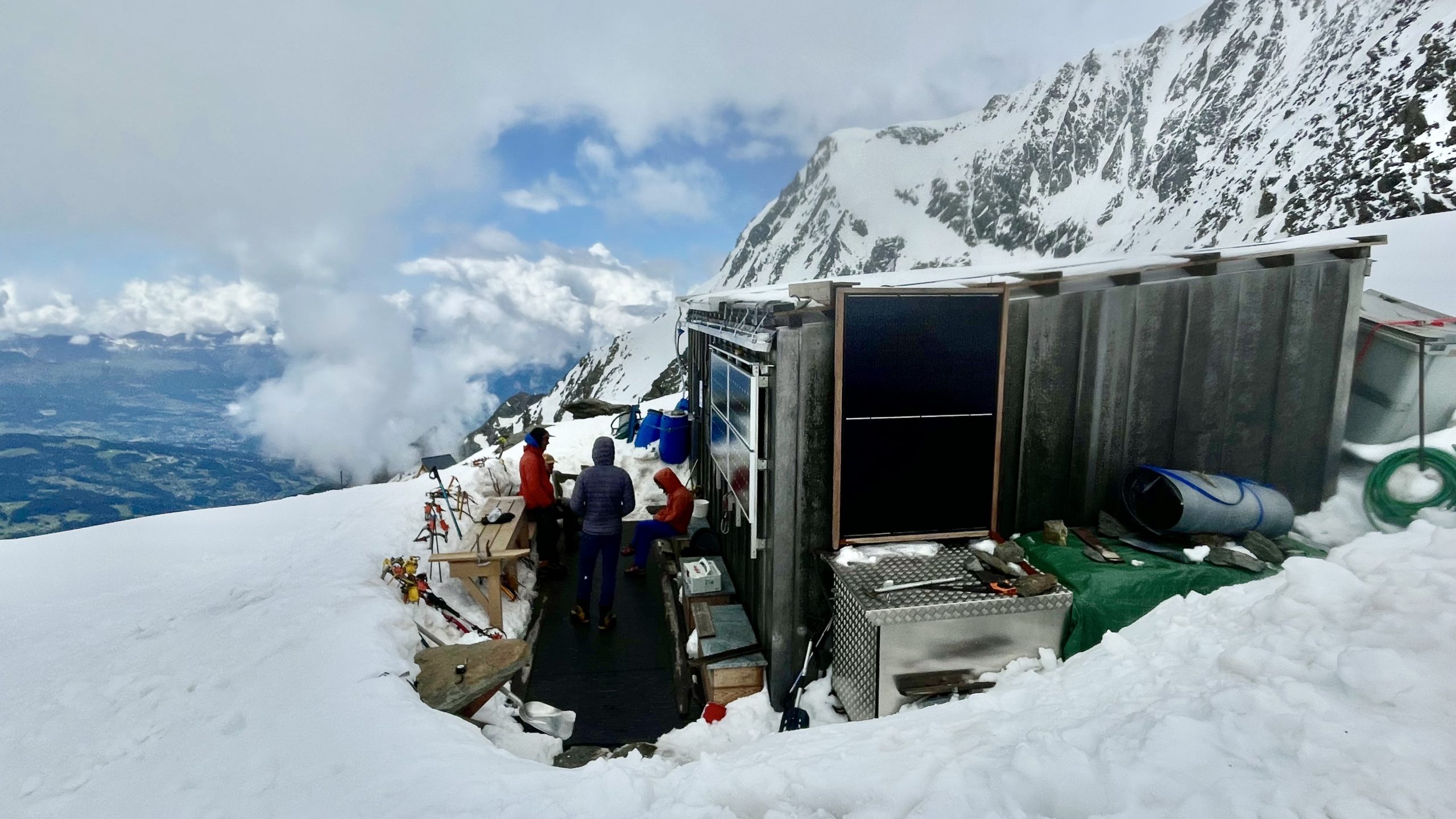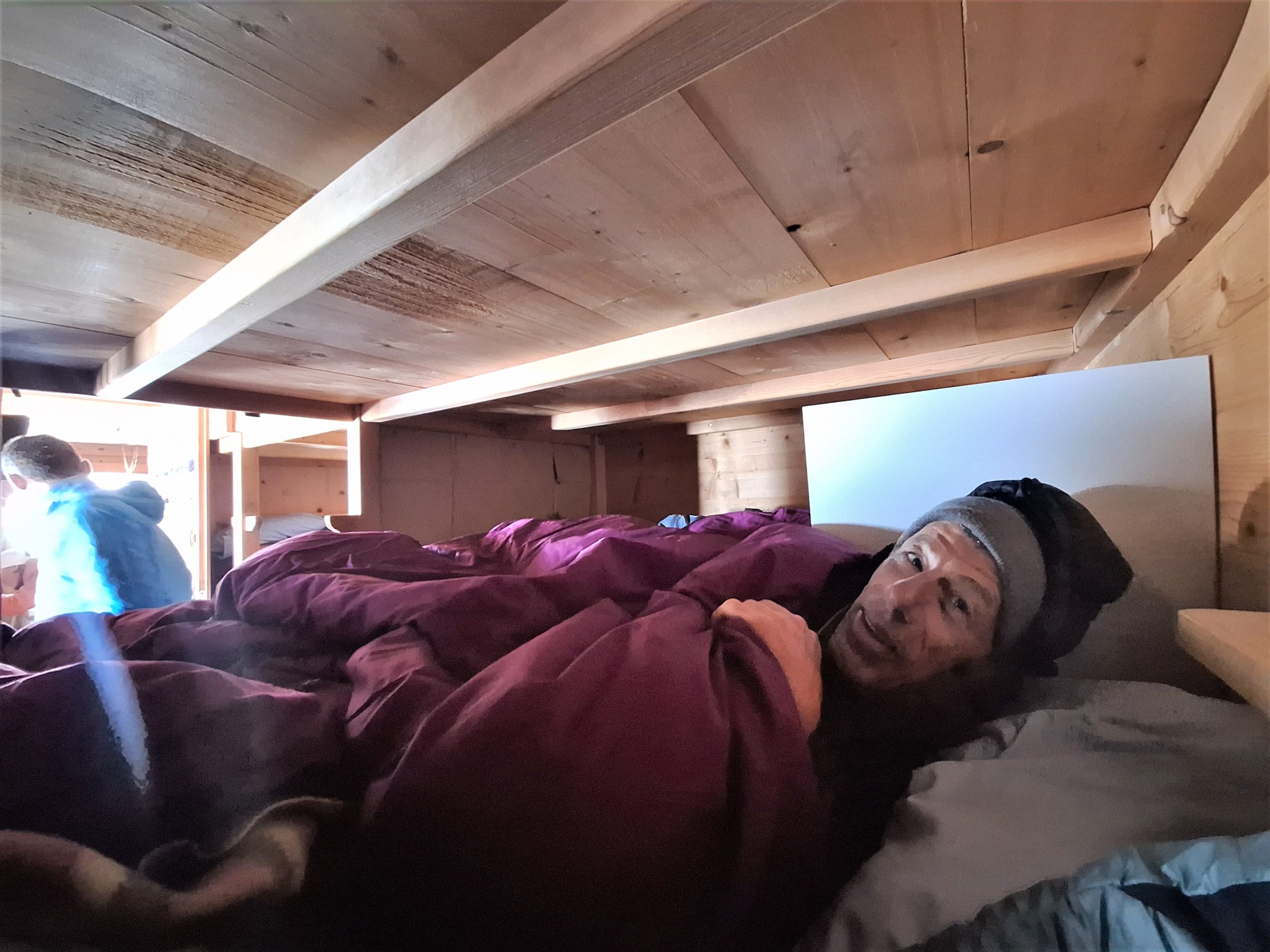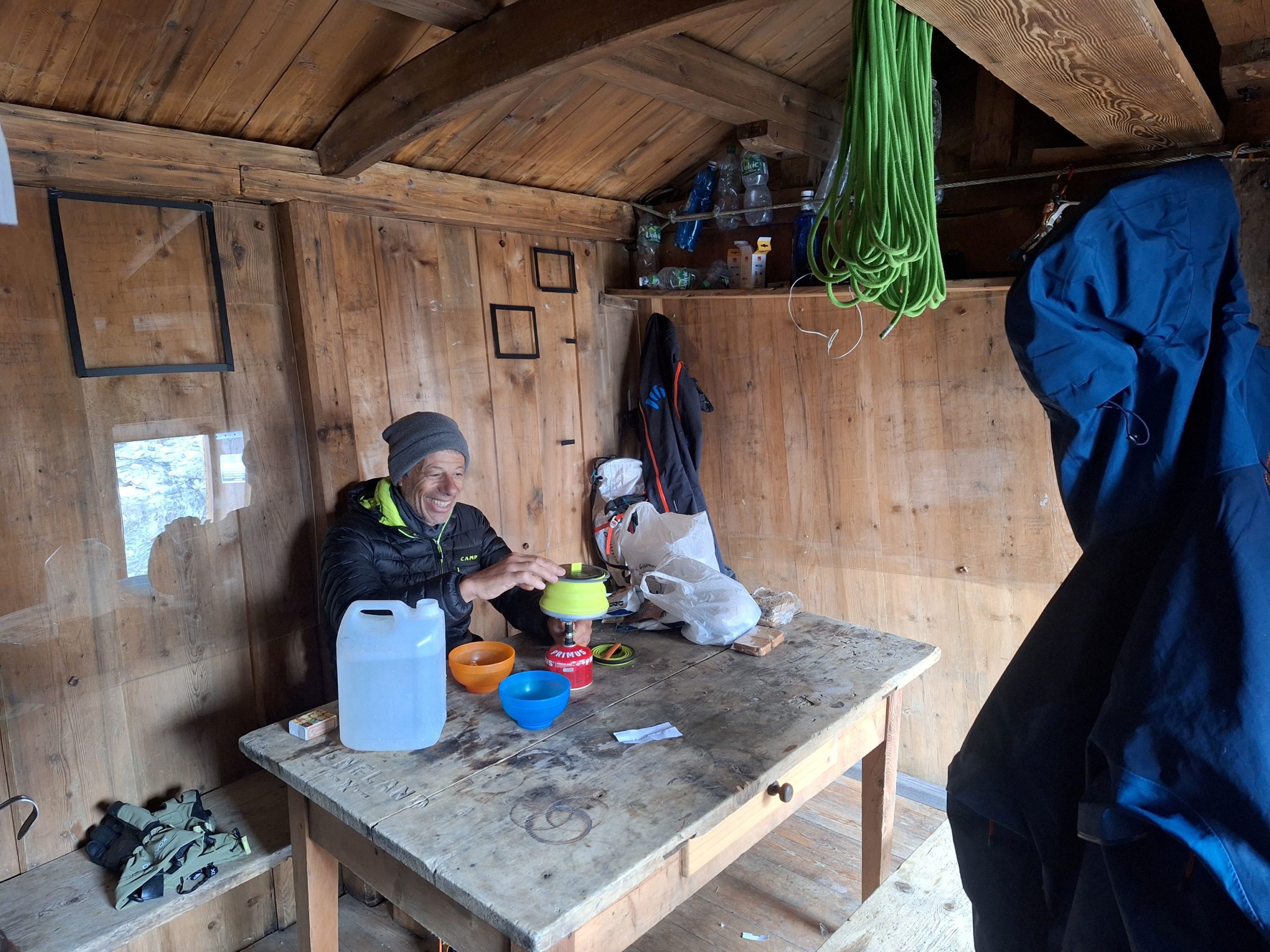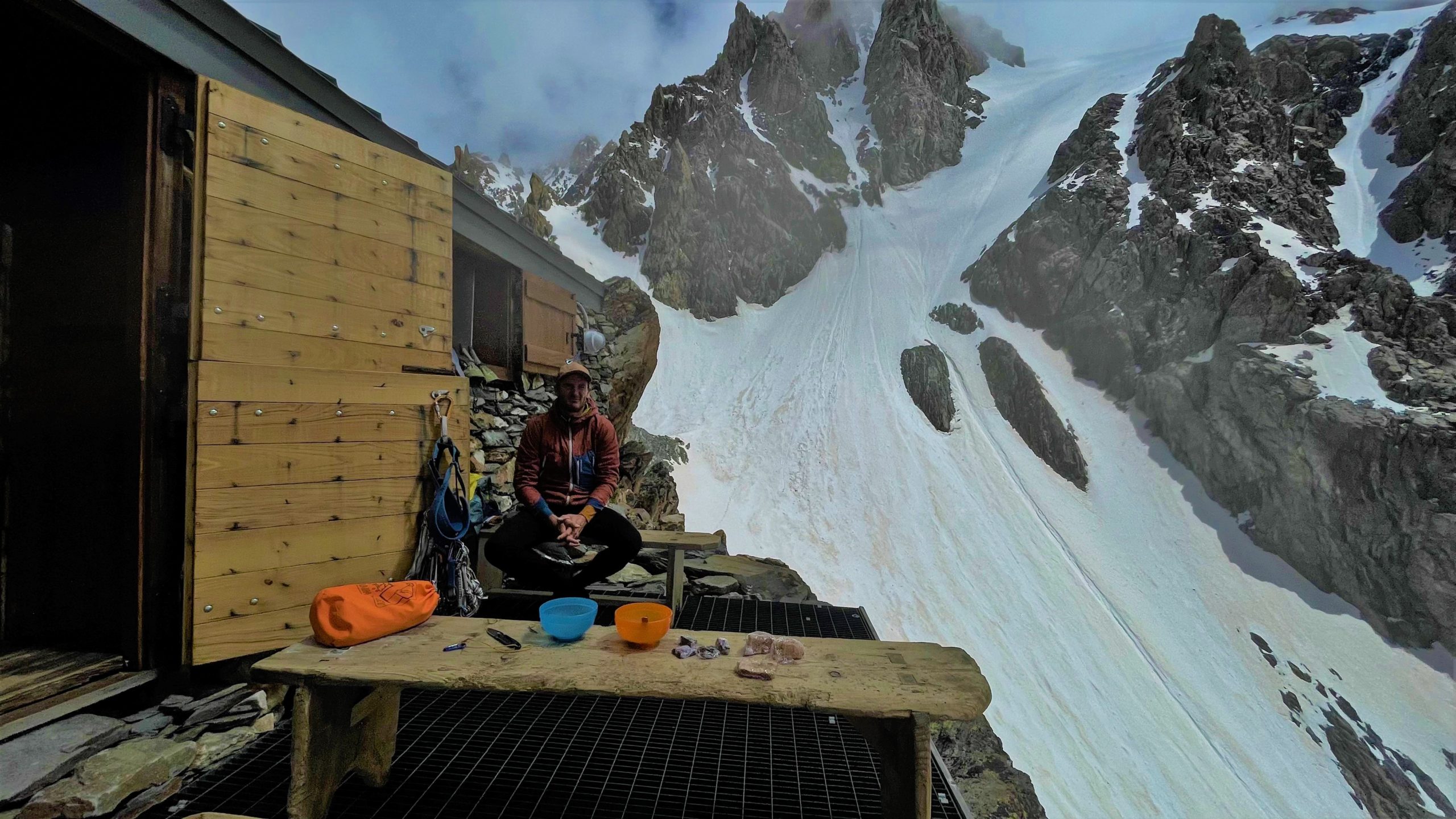 2h15 se sont écoulées lorsqu’on nous arrivons à notre magnifique bivouac. Un des plus vieux refuge des Alpes !