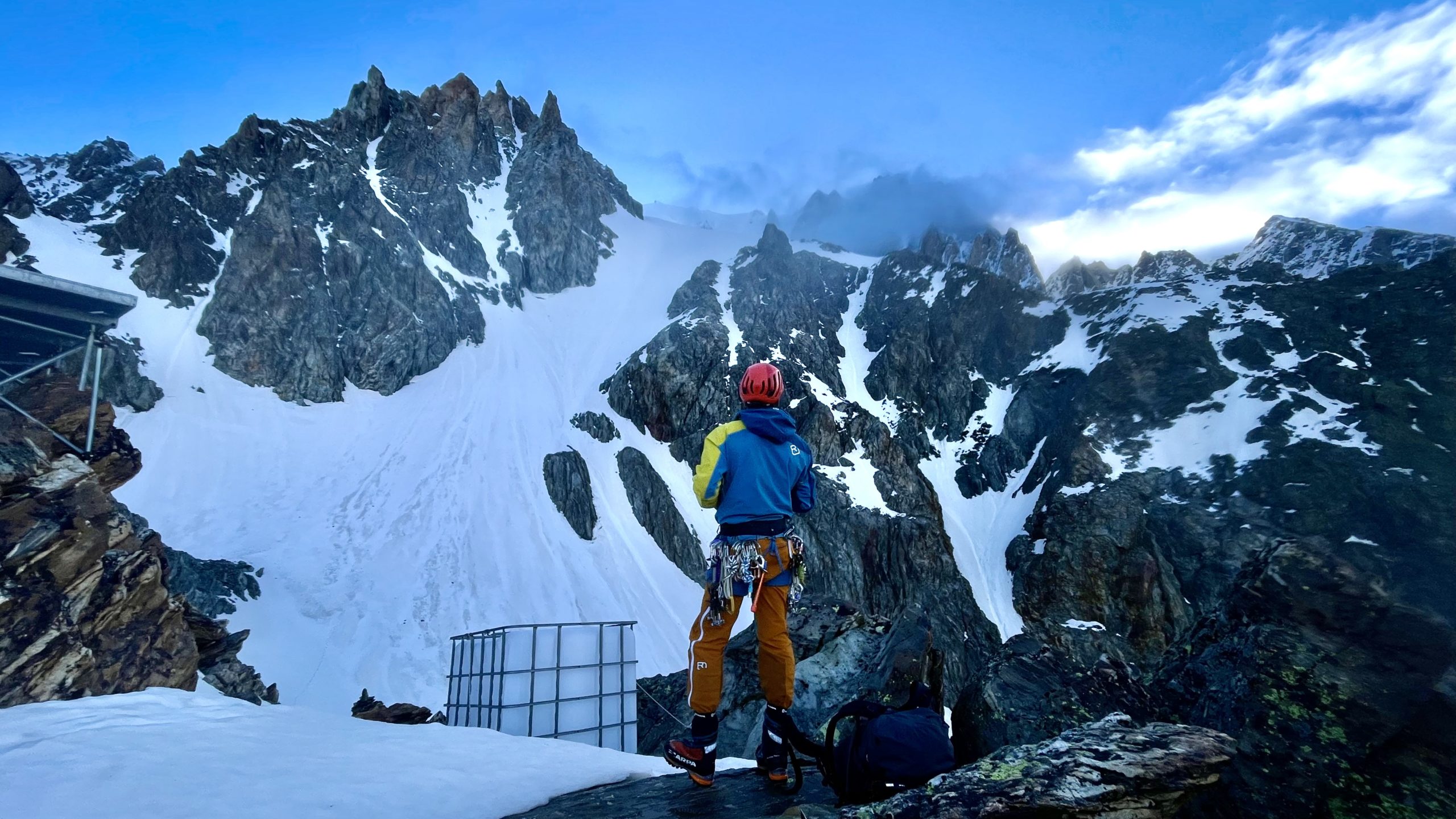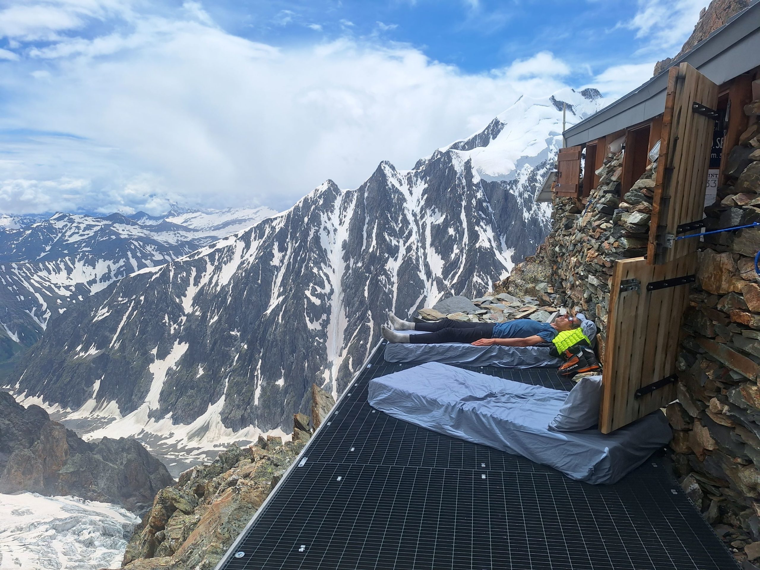 L’accès au bivouac Quintino Sella est relativement court et nous décidons de ne pas nous presser pour partir dans le couloir d’accès qui a une expo plein W donc qui chauffe tard dans la journée.