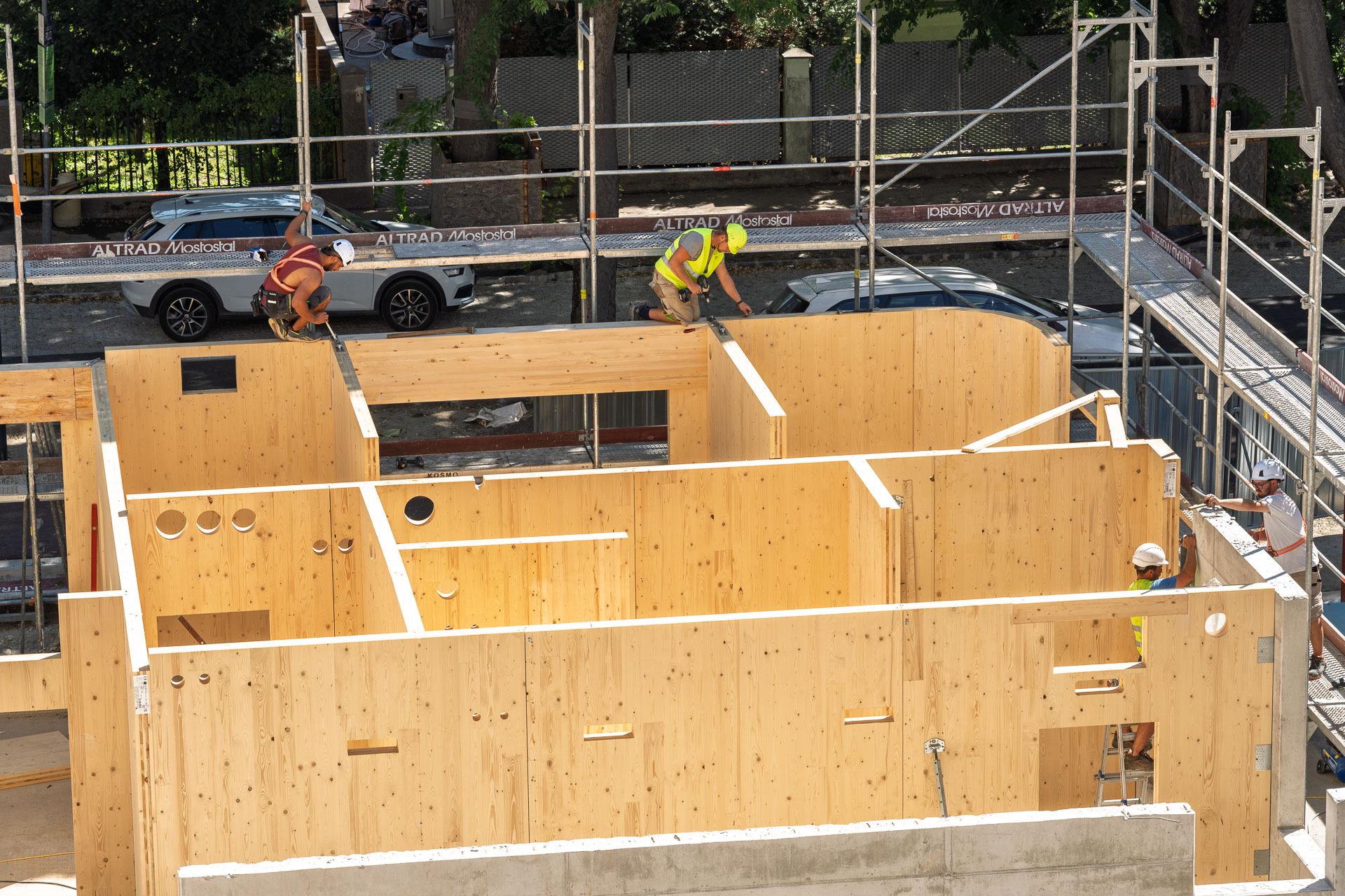 Na tomto projekte pôsobíme nielen ako autori architektúry a projektovej dokumentácie a dodávateľ časti objektu, ale zároveň aj ako stavbyvedúci a manažér výstavby, takže proces realizácie máme detailne pod kontrolou. Spoločnosť Kontrakting je zhotoviteľom hrubej stavby, pričom do projektu vstupuje ako subdodávateľská firma. Vzhľadom na to, že ide o technicky náročnú drevostavbu, je pre nás dôležité, aby bol celý proces realizovaný presne podľa projektu a v súlade s vysokými požiadavkami na kvalitu spracovania. V takomto nastavení je kľúčové, aby boli všetky strany profesionálne, spoľahlivé a otvorené spolupráci. Náš tím zabezpečuje každodennú koordináciu na stavbe, kontrolu kvality a dohľad nad tým, aby sa zámer architektúry premietol do výsledku bez kompromisov. Vážime si, keď realizačné firmy pristupujú k práci zodpovedne – pre nás ako architektov je to kľúčový predpoklad, aby mohol vzniknúť projekt, ktorý spĺňa očakávania investora aj budúcich používateľov.