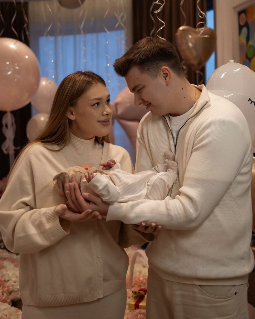 Роберт и Маша Герберы поделились с подписчиками трогательными семейными кадрами после выписки из роддома: пара впервые показала свою новорожденную дочку. На фото они позируют дома среди нежно-розовых шаров и цветов, держа малышку на руках.