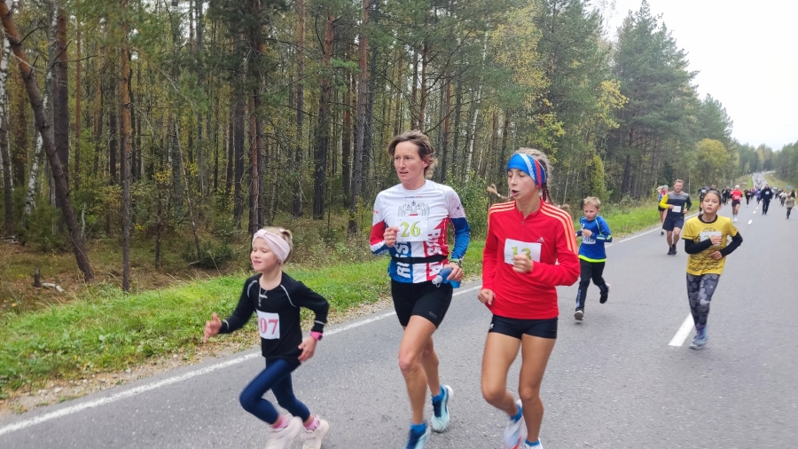 А самый красивый финиш был у жительницы посёлка Гиблицы Нины Федотовой. Её там встречала целая команда болельщиков с цветами и аплодисментами – родственники, коллеги, соседи. Мама Елена Робертовна буквально приняла дочку в свои объятия на финальной точке в 12 км.