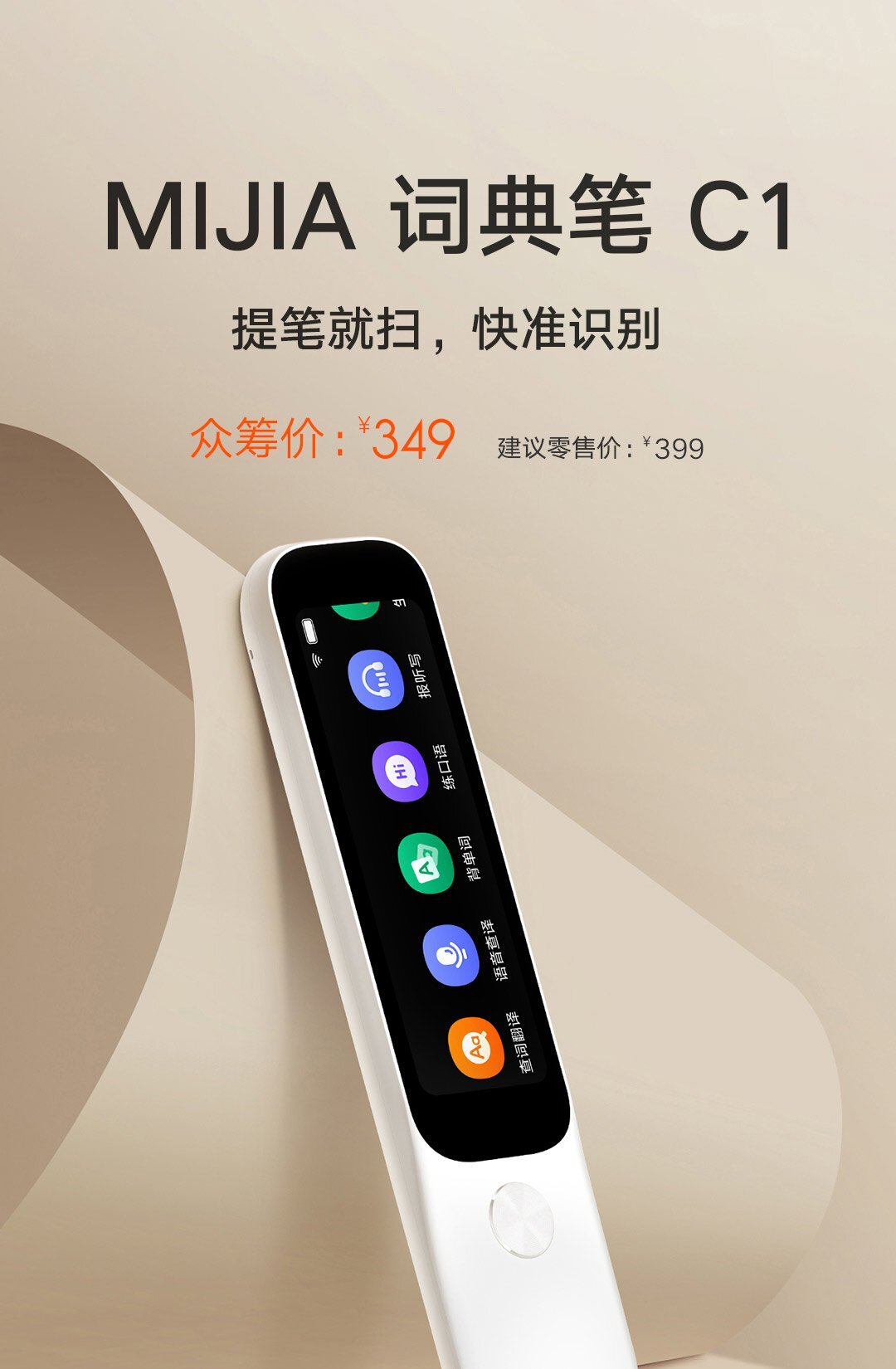 Xiaomi пополнила каталог Mijia новым весьма необычным устройством — ручкой-словарём Dictionary Pen C1 (название переведено с китайского). Она оснащена экраном на 3,02 дюйма, куда помещаются сразу несколько иконок интерфейса прошивки, но главное его предназначение — отображать перевод слов, сканируемых носовой частью, и прочую сопутствующую информацию.