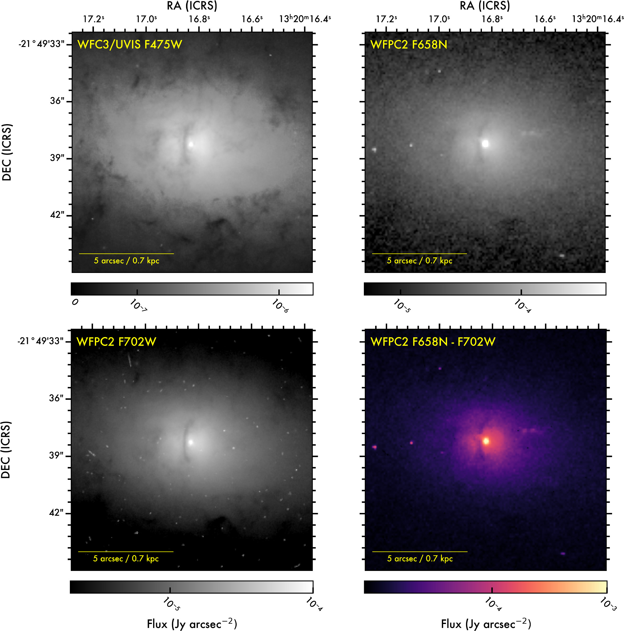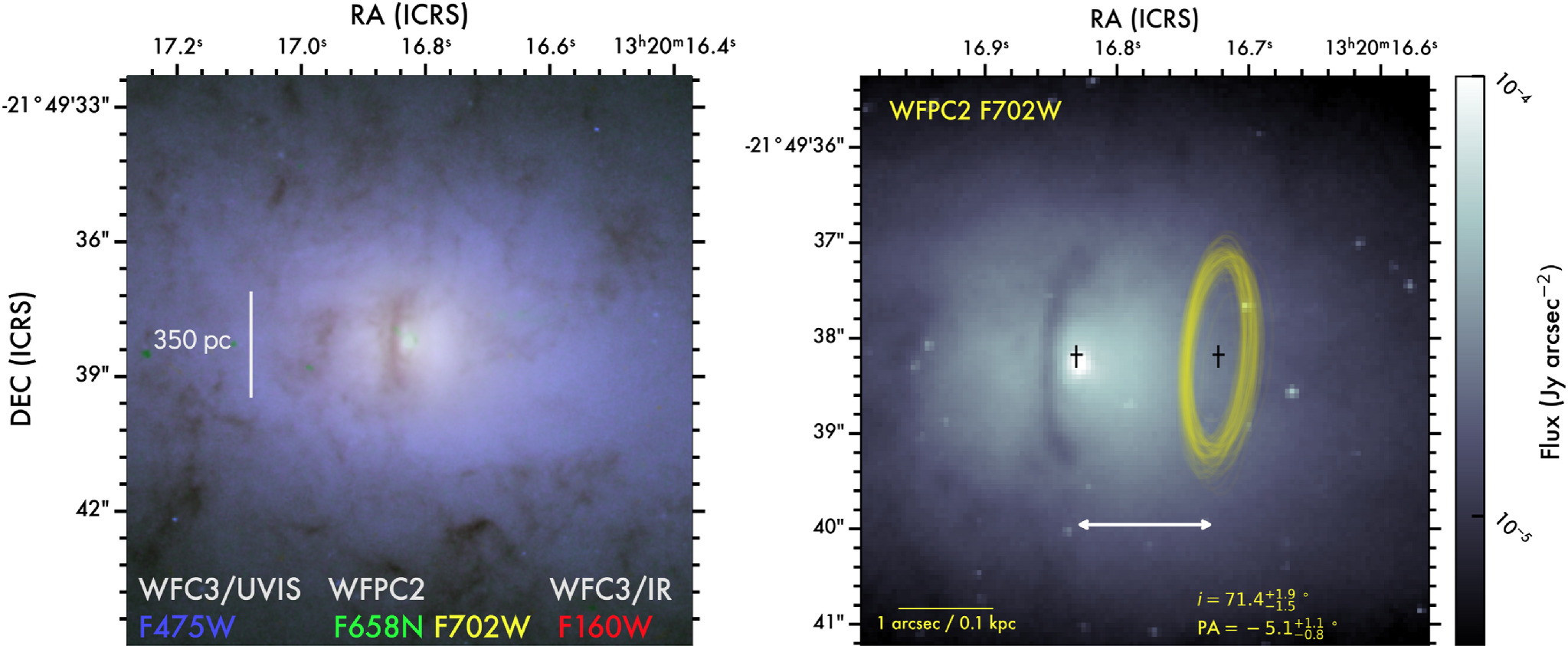 Чтобы исключить возможность ошибки или артефакта в данных, ученые обратились к дополнительным наблюдениям, полученным с помощью космического телескопа «Хаббл» и радиотелескопа ALMA. Изучение изображений в разных диапазонах электромагнитного спектра позволило получить более полную картину происходящего в ядре NGC 5084. В результате анализа стало очевидно, что в центре галактики вращается пылевой диск, плоскость которого повернута на 90 градусов относительно основной плоскости галактики.