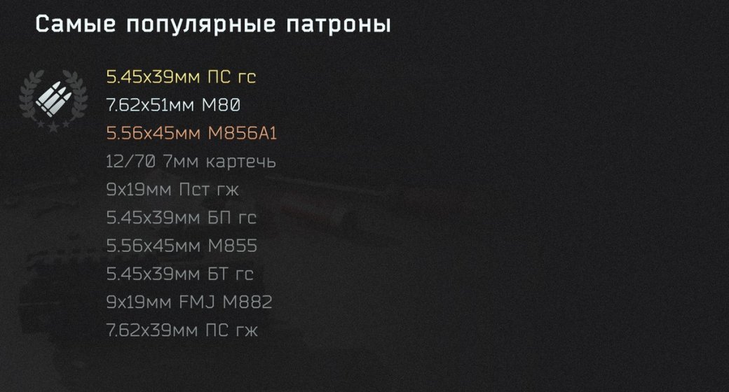 А вот наиболее популярными патронами оказались 5.45х39мм ПС гс. С полной статистикой за время патча 0.15.0 можно ознакомиться в сообществе Escape from Tarkov.