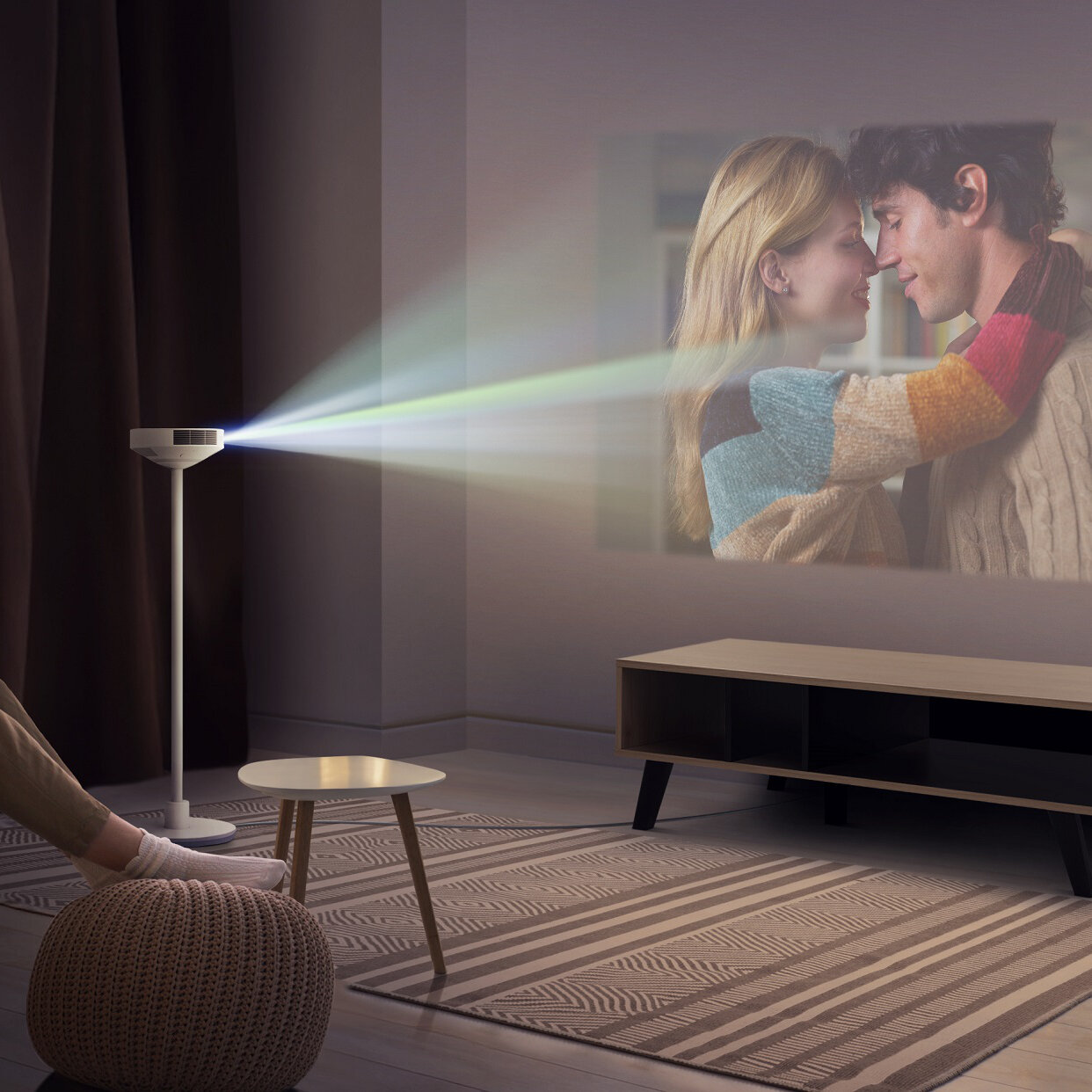 - LG PF600U. Многофункциональный проектор 3 в 1 с разрешением Full HD, может выступать как светодиодный торшер и Bluetooth-колонка.