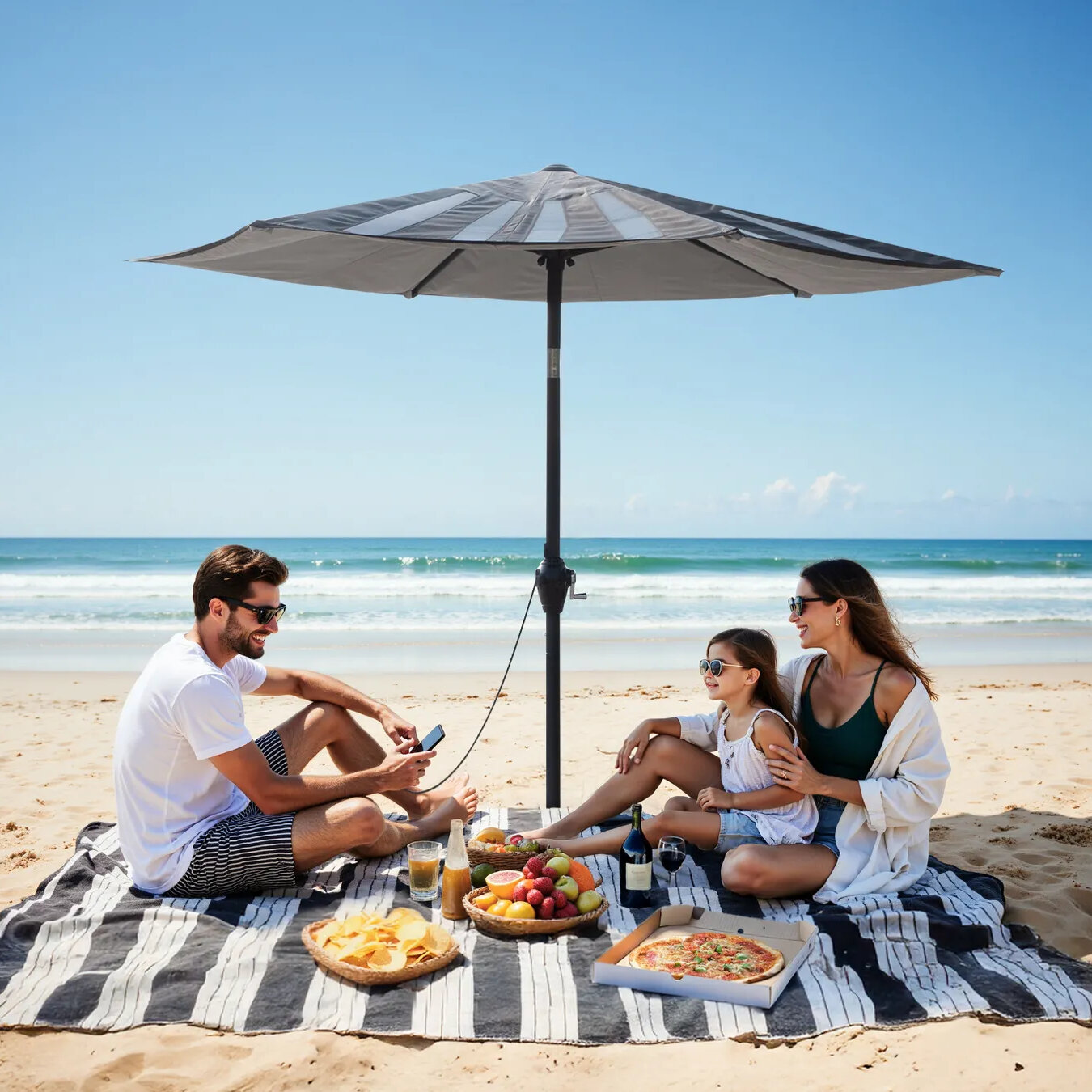 - Anker Solid Solar Beach Umbrella. Пляжный зарядный зонт, зарядка до 100 Вт осуществляется от перовскитных солнечных элементов.