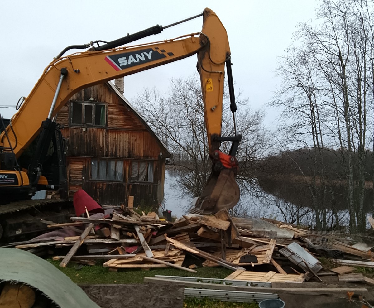 Они находились ближе 50 метров от водной линии, а это нарушает закон. Вместо того, чтобы доказывать свою правоту в судах, мужчина решил использнить закон и убрал все сам, наняв экскаватор.