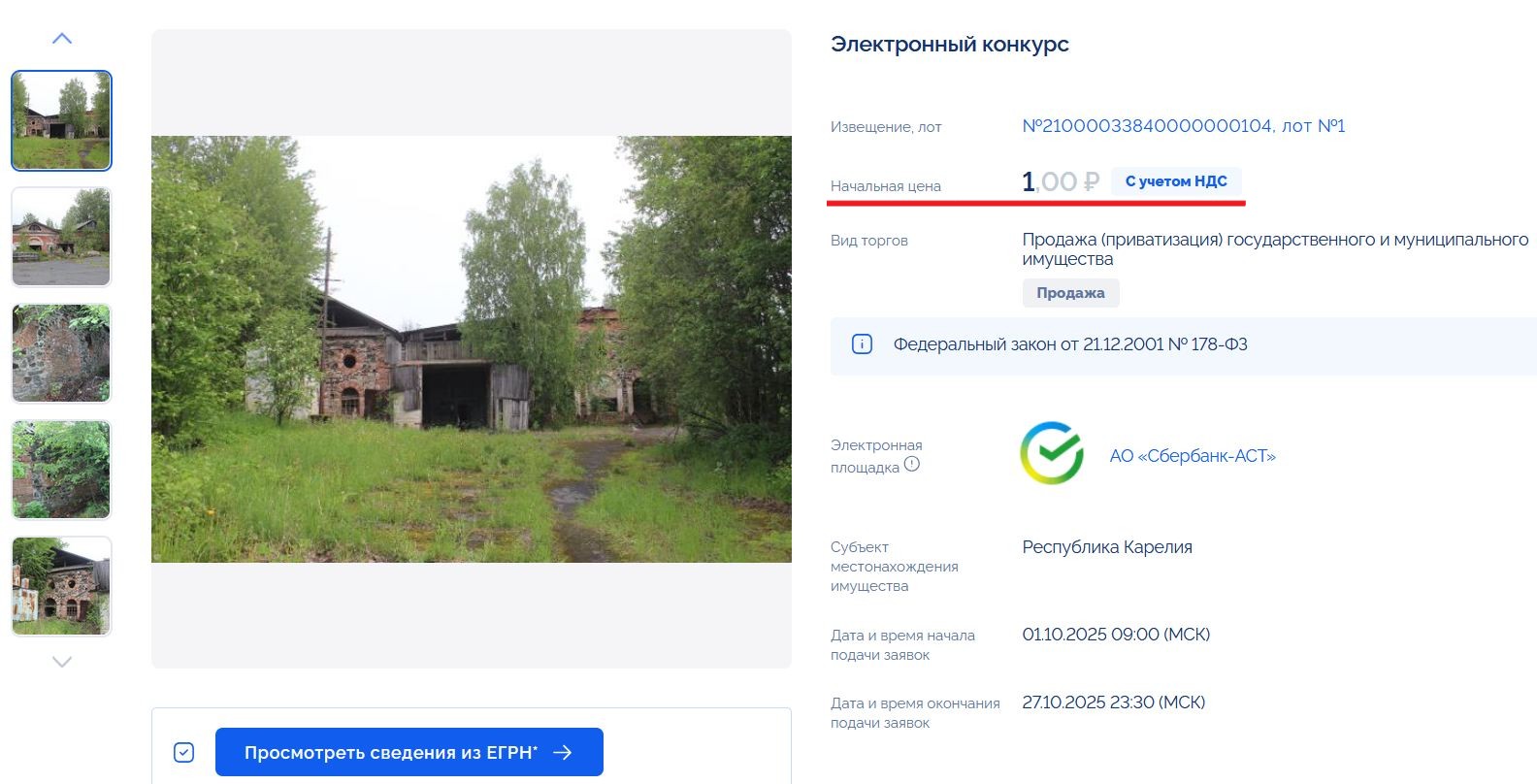 В Карелии старинный завод времен Петра I продают всего за 1 рубль