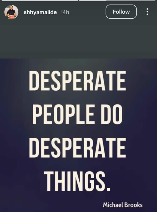 Late on Sunday, Raj Nidimoru's former wife Shhyamali De had taken to Instagram Stories to share a cryptic. It read, "Desperate people do desperate things." Shhyamali had not mentioned anyone's name, but netizens were quick to pick up on the timing of her post.