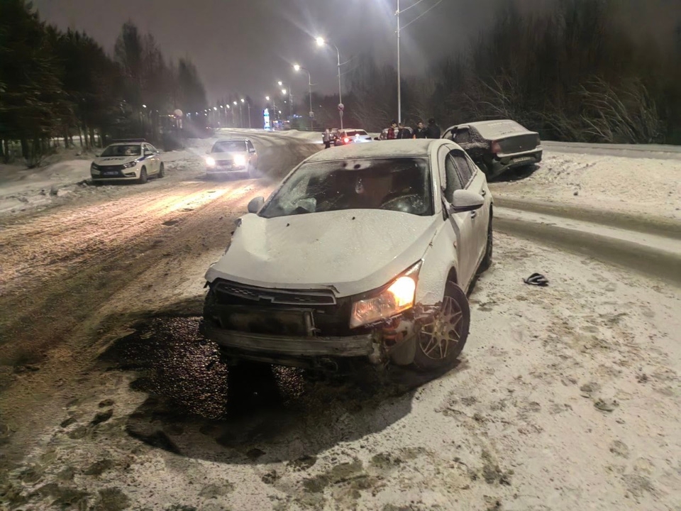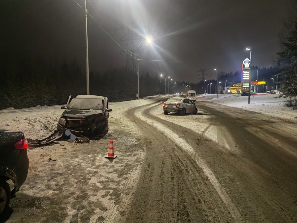 Авария случилась 28 декабря в 03.23 в районе дома № 12-а по Лососинскому шоссе. По данным ГАИ, 34 — летний водитель автомобиля Chevrolet выехал на полосу встречного движения и столкнулся с автомобилем Renault. Травмы получил 24-летний водитель Renault.