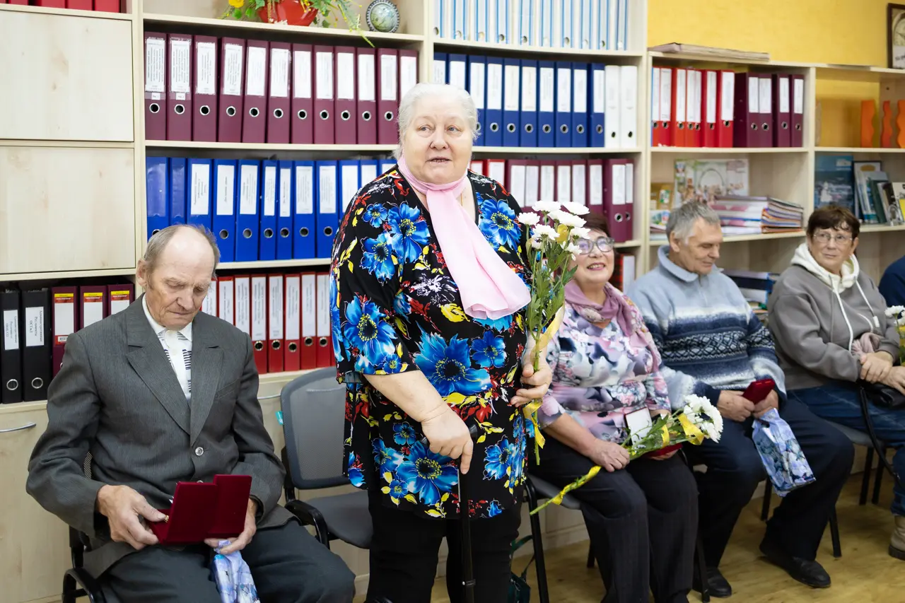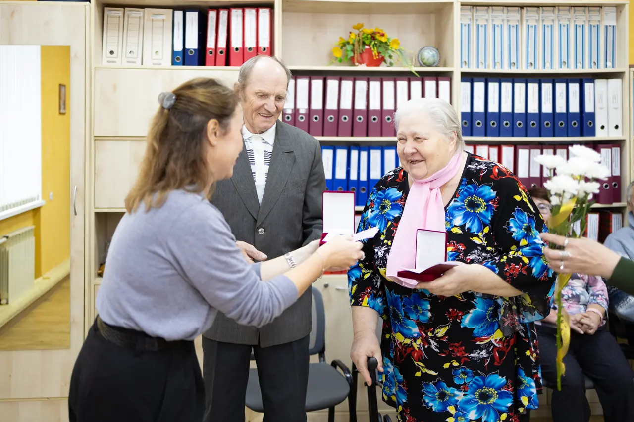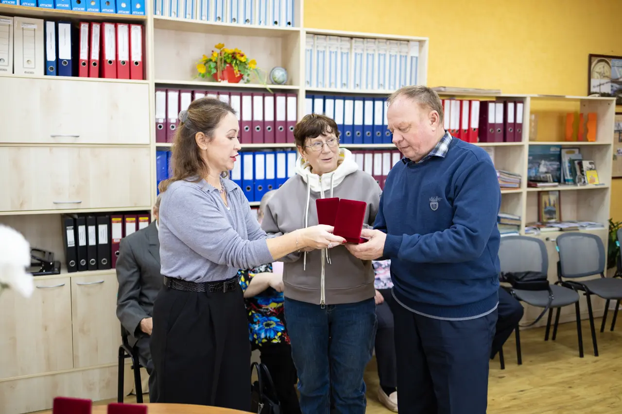 Каждый из «золотых молодоженов» получил медаль в красной бархатной коробочке, а милых дам порадовали букетами белых хризантем. В честь праздника пожилых людей, который отмечали накануне, виновникам торжества вручили небольшие подарки. Светлана Петровна Бородина из-за болезни не смогла присутствовать на церемонии, и ей поздравления и добрые пожелания передали через мужа Станислава Викторовича.