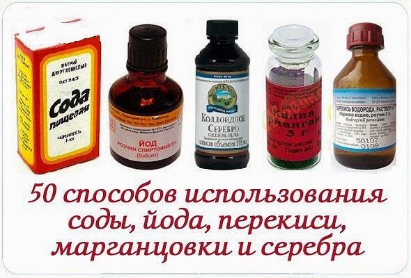 50 способов использования соды, йода, перекиси, марганцовки и серебра