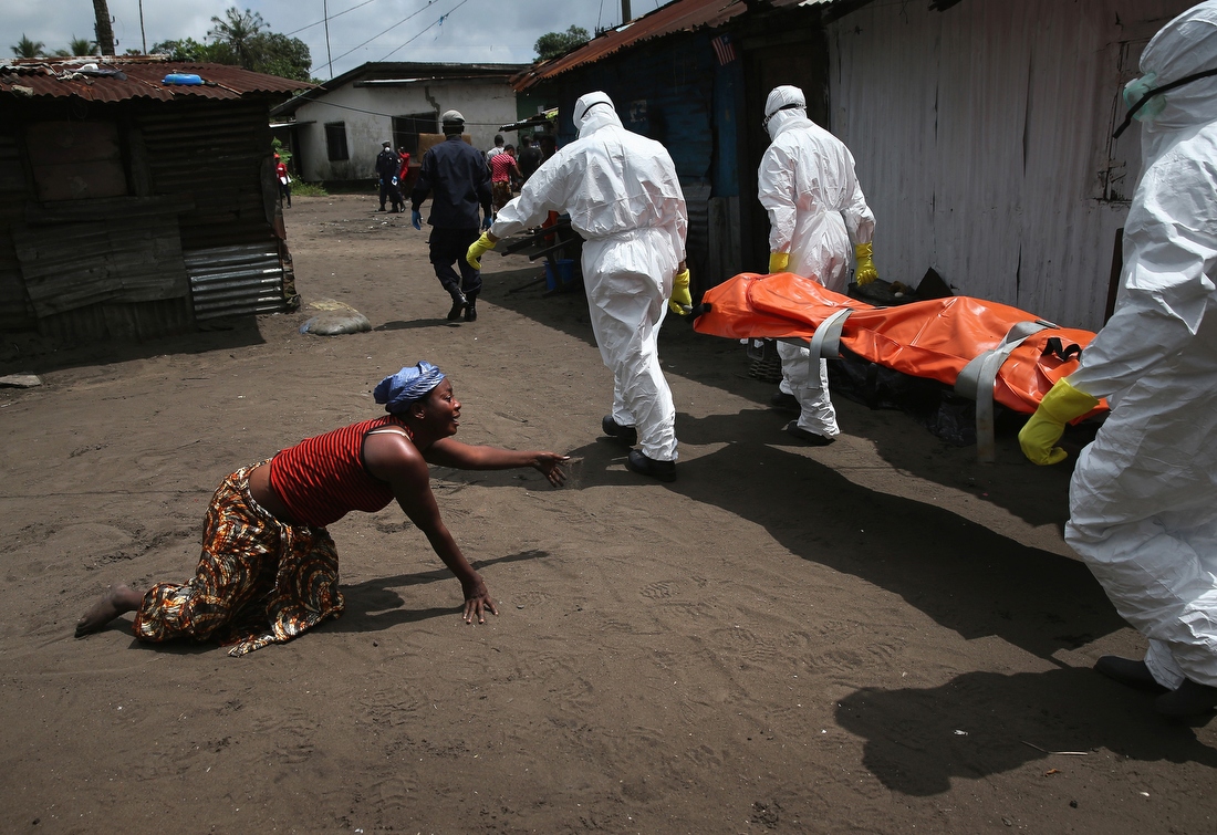 Джон Мур — фотограф года. Летом 2014 года Либерия стала эпицентром вспышки худшей в истории эпидемии лихорадки Эбола. Сложнее всего было сдерживать распространение болезни в столице страны Монровии. Похоронный ритуал у либерийцев предусматривает омывание тела, из-за чего эпидемия распространялась с катастрофической скоростью. © John Moore / Getty Images / Sony World Photography Awards