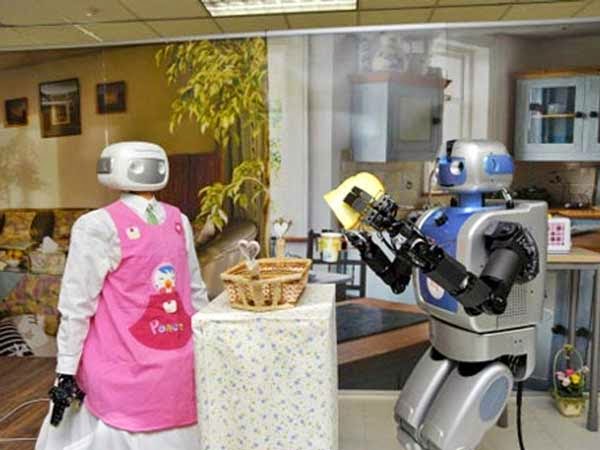 Робот-хозяйка.Теперь разработчики планируют сконструировать более продвинутую модель, которая сможет функционировать в местах, слишком опасных для людей. Созданный корейскими учеными робот Mahru-Z передвигается на колесах и умеет выполнять простые бытовые задачи: загрузить грязным бельем и включить стиральную машину, заправить тостер хлебом, собрать разбросанные предметы.