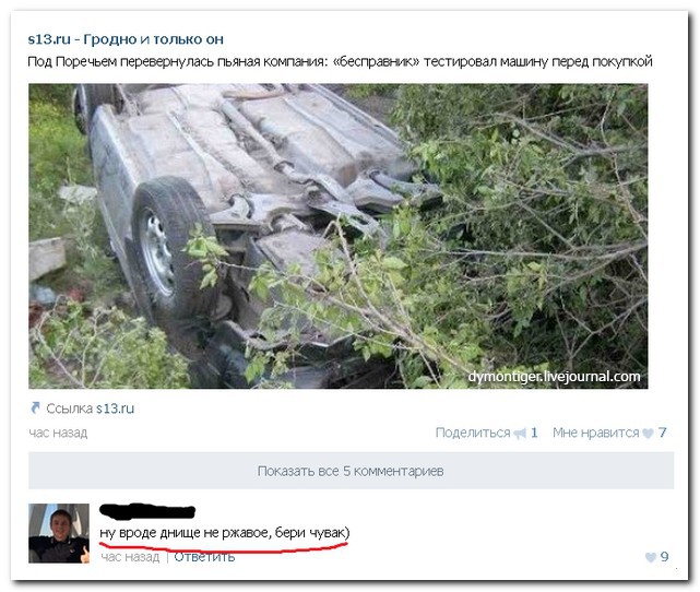 Смешные комментарии из социальных сетей 0 13.05.2015 11:29 Блог сайта «РЖАКА» Очередная подборка смешных высказываний и комментариев из социальных сетей и других частей интернета. http://dymontiger.livejournal.com/3669498.html