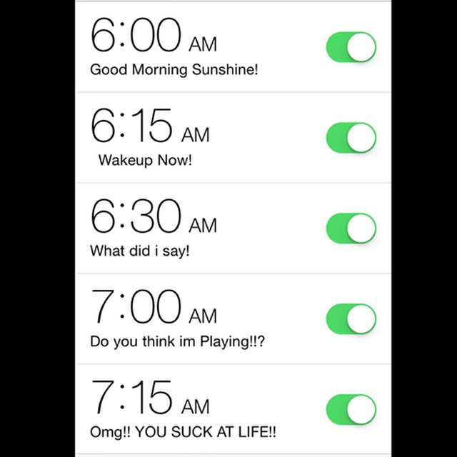 1. Вы должны два-три раза проверить будильник на телефоне до того, как идти спать, иначе вы будете спать до полудня.