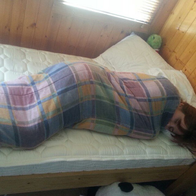 6. Даже если у вас осталось всего две минуты сна, вы решаете НЕМНОГО ПОДРЕМАТЬ и заворачиваетесь в одеяло на манер буррито.