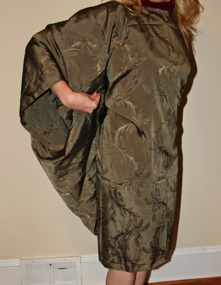 Переднюю часть я запустила назад, формируя своего рода платье, но так чтобы линия подола впереди была ровной, на спине в области лопаток закрепила эти части булавкой. Сняла платье и прострочила шов сзади от низа до места крепления булавки.