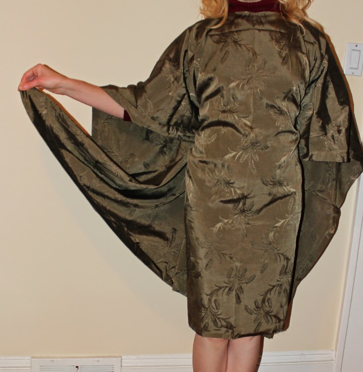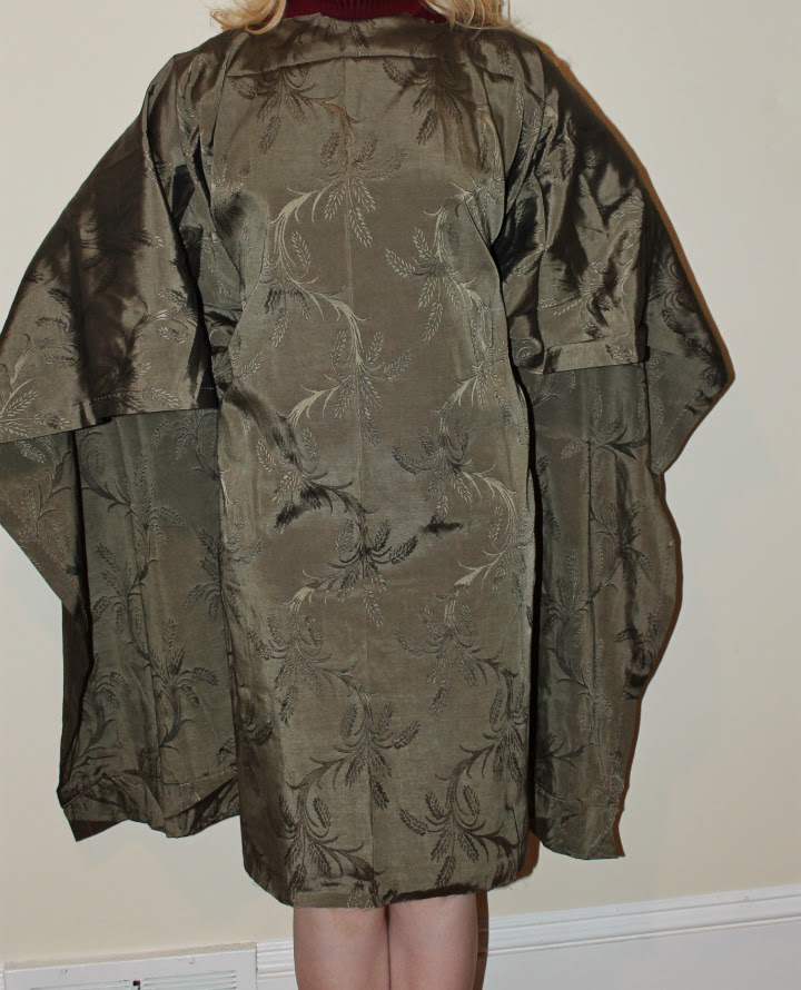 Затем снова одела уже платье на себя, и концы заднeй части - пелерины с обеих сторон закрепила булавками как показано на фото. И тоже их пришила.
