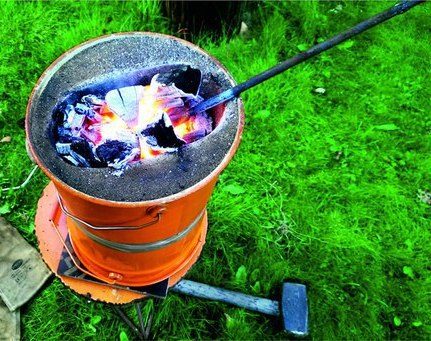 Горн в высшей степени мобильный - я его сегодня переносил поближе к тискам прямо в рабочем состоянии (конечно поддув я отключил, но красных углей в нем было с горкой)!