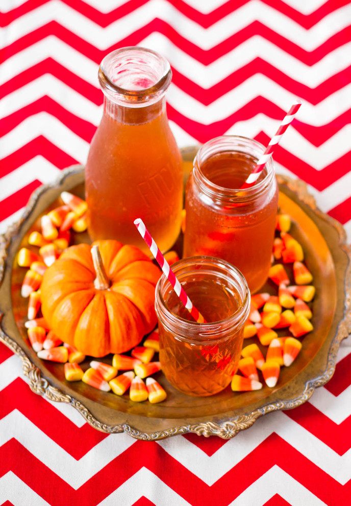 Осенний декор чайного стола часто делают из лакомств: мед, сиропы, морс, маленькие тыквы и другое.