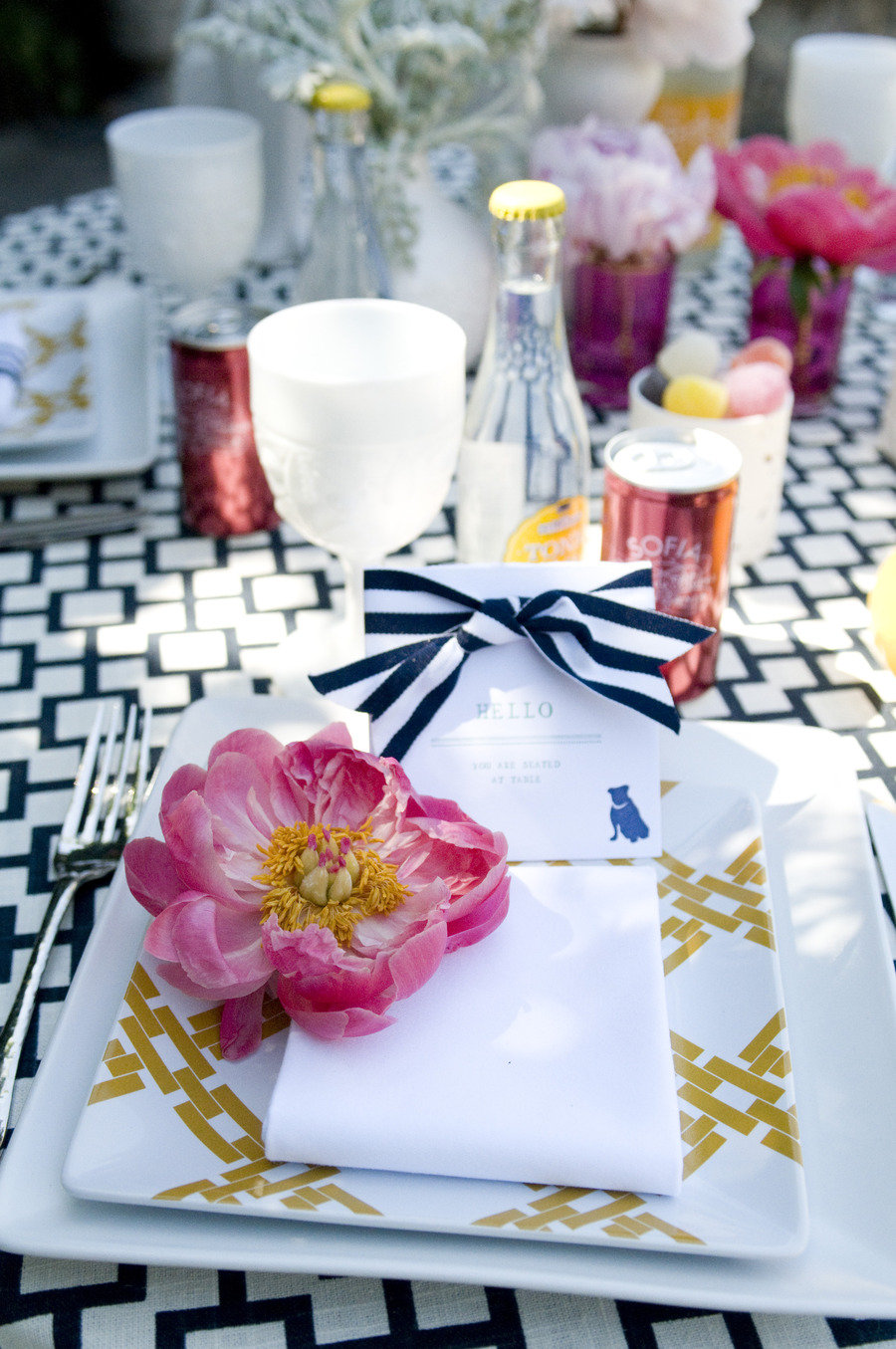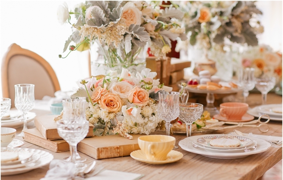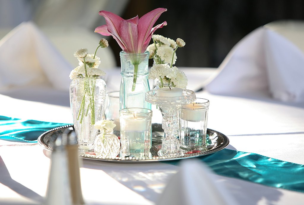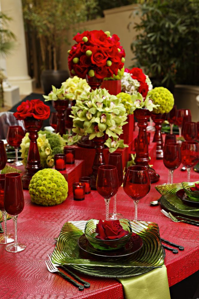 Вполне допустим многочисленный мелкий декор стола. Лучше всего группировать его зрительно вокруг раннера, или возможно, даже лент, перекинутых вдоль или поперек стола