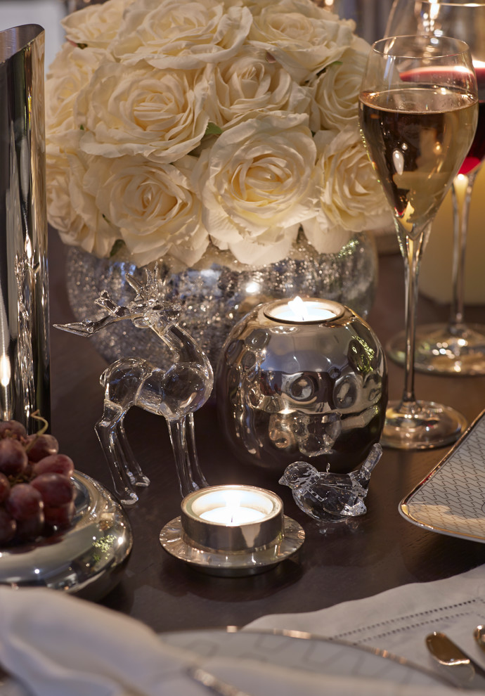 Ужин сервируется так же строго, как и обед. Только живые цветы можно заменить свечами в высоких подсвечниках. Вместо хрусталя можно поставить на стол серебряную посуду: общие блюда, соусники, салатницы. Вечер – время мягких теней. Сервировка стола должна соответствовать.