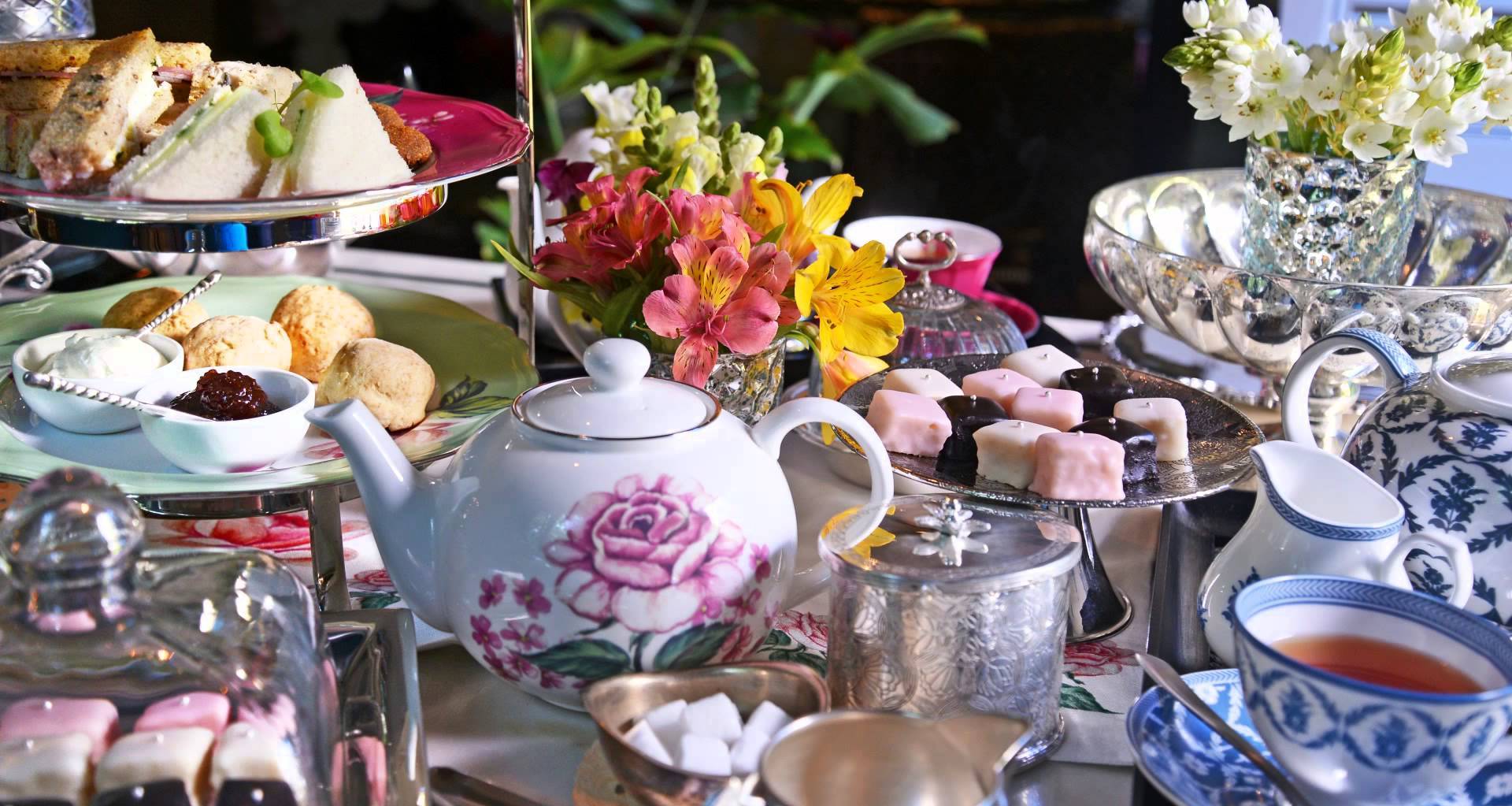 Садовая чайная вечеринка предполагает сервировку только десертными принадлежностями и небольшими тарелочками. Пирожные выкладывают в общие вазы