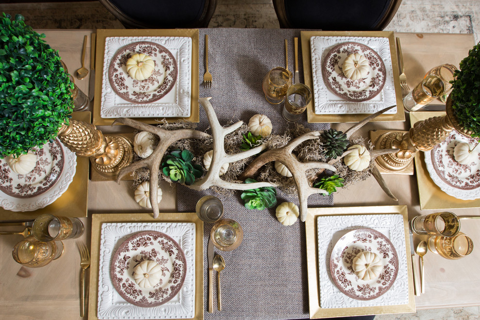 Золоченые столовые приборы и золотистый декор: торжественно, просто, можно сочетать со многими цветами, а также беспроигрышно подходит для осеннего и зимнего декора стола