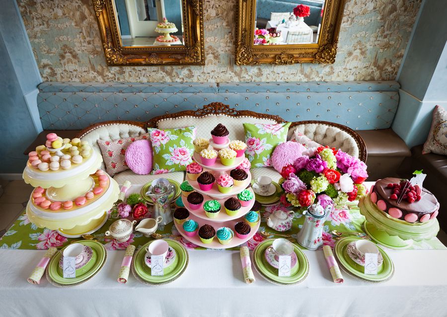 Отличный способ провести праздник детям чуть постарше, которым не нужно обеспечивать условия для очень подвижного времяпрепровождения — начать его с посиделок с чаем и пирожными
