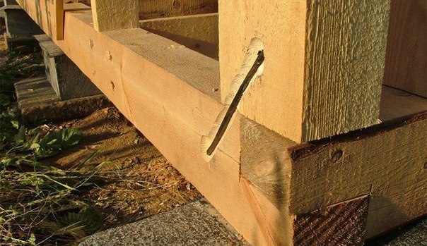 При наращивании деталей узел может укрепляться сквозным болтовым соединением, хомутами, скобами и глухарями, либо его просто обматывают холоднокатаной проволокой. Сращенные вертикальные опоры достаточно скрепить двумя накладными планками — деревянными или металлическими.