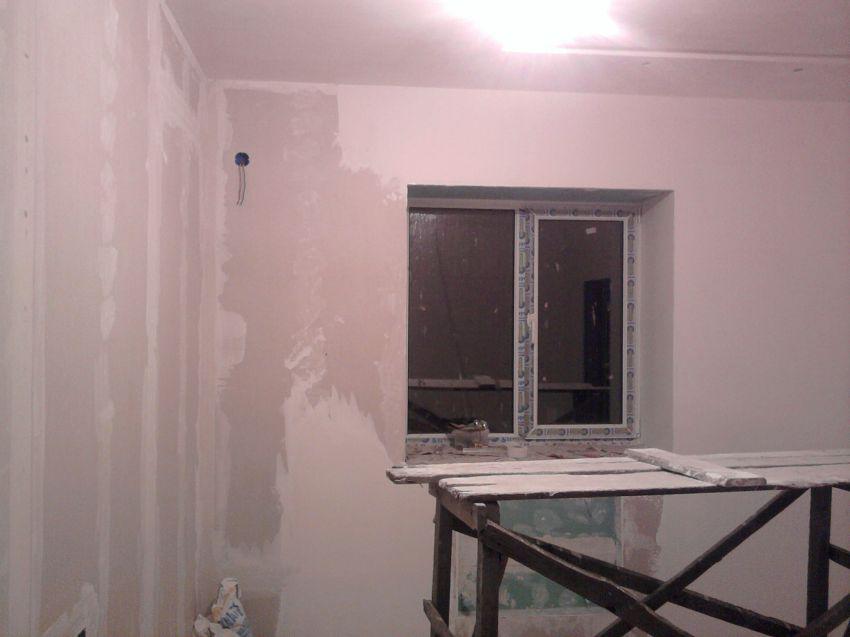Шпатлевку покупал готовую в ведрах (финишную). Она очень хорошо вытягивается тонким слоем. Стартовую брал сухую в мешках. Для стыков гипсокартона была куплена специальная. Также купил большой рулон сетки для вертикальных стыков гипсокартона, рулон бумаги для горизонтальных стыков и металлический уголок на все угля.