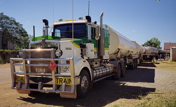 В пустынных регионах Австралии для перевозки грузов используются так называемые «дорожные поезда» — road trains. Они состоят из мощного тягача, трейлера и одного или нескольких дополнительных прицепов. Полная масса автопоезда может достигать 115 тонн.