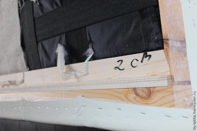 Для удобства их потом лучше укоротить, чтобы они немного торчали из дивана с обеих сторон.