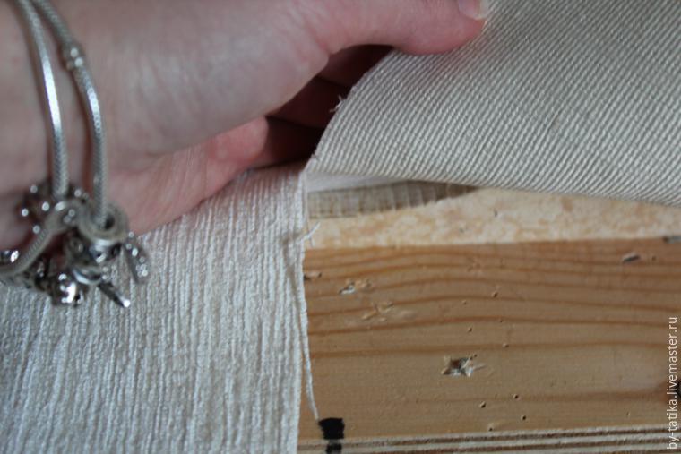3. Во время натяжения обязательно проглаживайте ткань рукой от центра детали к ее краю, чтобы убрать все "лишнее", эти "излишки" делают работу весьма неаккуратной.