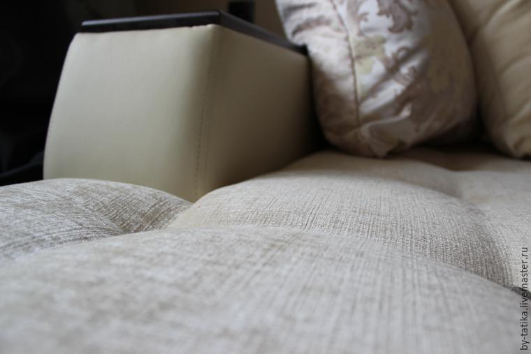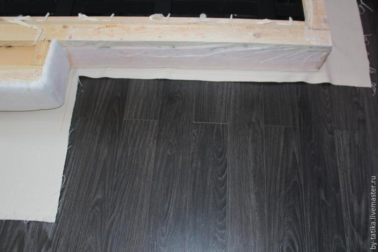 1. Перед натяжением надо обязательно выровнять строчки угов, чтобы они попадали на углы дивана.