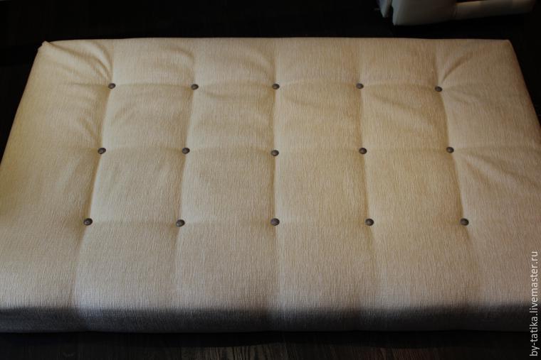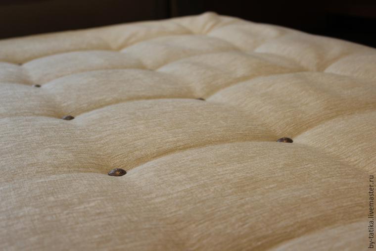 4. По поводу пуговиц: силу натяжения можно легко проверить — садитесь на готовую подушку, если ближайшая пуговица "легла" на ткань, то сил надо приложить побольше. При хорошей стяжке пуговки не вылезают, а остаются плотно "сидящими".