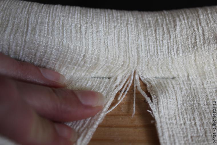 2. Для первого раза лучше выбрать ткань без рисунка, чтобы не перетянуть его, но даже при условии отсутствия рисунка следите за волокнами ткани при натяжении.