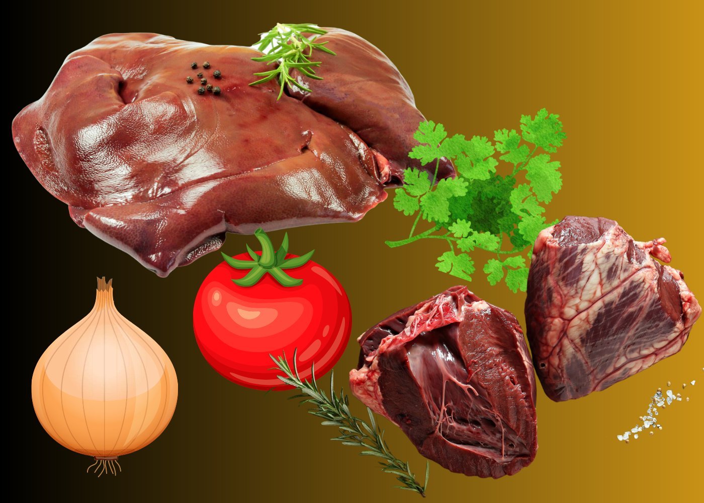 Помимо печени и говяжьего сердца в блюдо входят специи, овощи и обязательно — свежая кинза!
