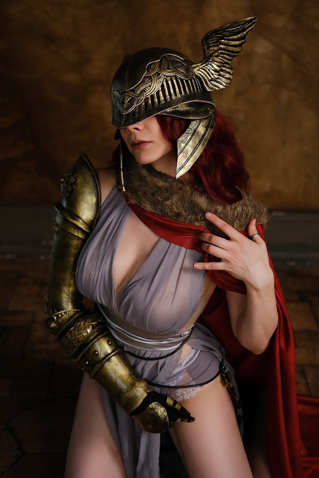 Она показала рыжеволосую Малению в аутентичной броне с крылатым шлемом на голове и с длинным мечом в руках. Также косплеер сделала несколько снимков в будуарном образе Малении. Запечатлел образ Тарас Бутейко.