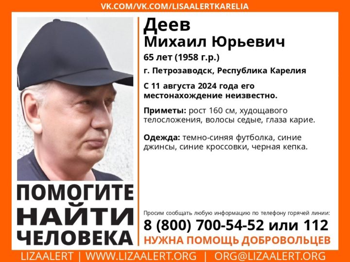 В Петрозаводске пропал 65-летний Михаил Юрьевич Деев.