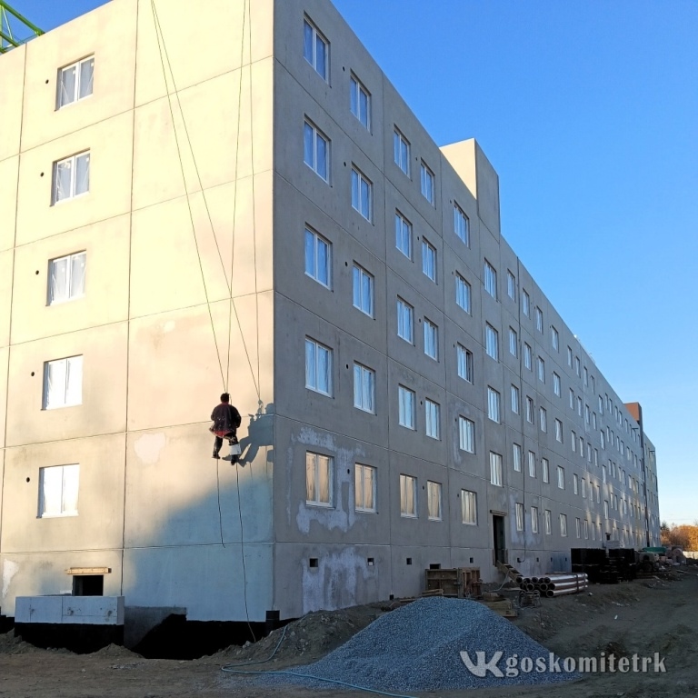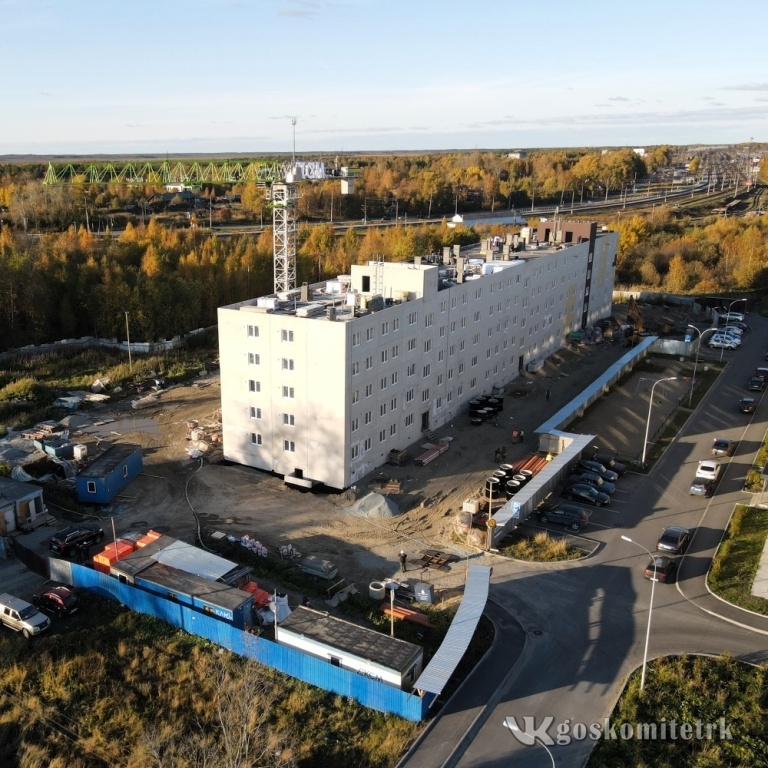 На объекте проведены работы «нулевого цикла»: завершены устройство котлована, фундамента (сваи, ростверк), монтаж цокольных панелей и плит перекрытия цоколя. Выполнен монтаж стеновых и парапетных панелей, лестниц и площадок, произведено бетонирование перекрытий, установлены окна.